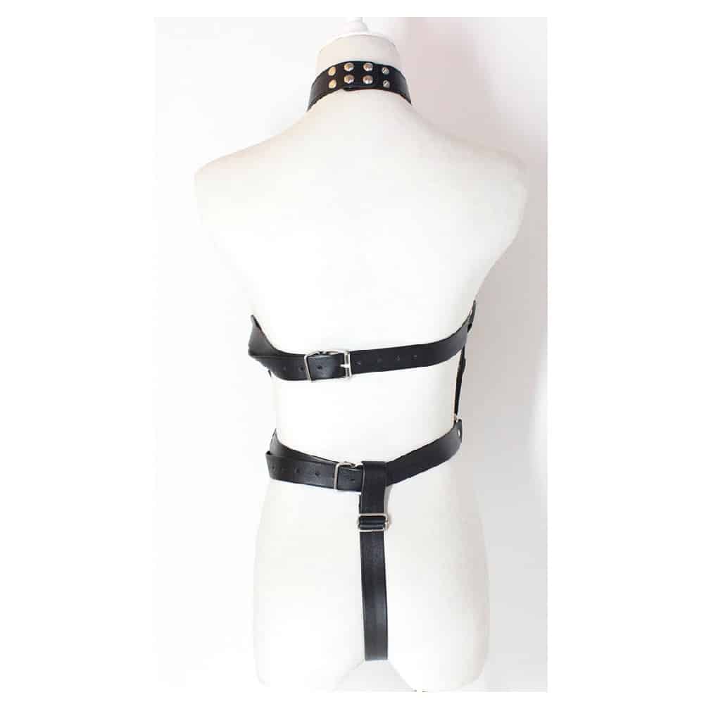 Προσθέστε το στοιχείο της φαντασίας και του φετιχισμού στην ερωτική σας ζωή με αυτά τα φετιχιστικά δεσμά σώματος τα οποία προσωμοιόζουν κορμάκι. Κατασκευασμένα από δέρμα απομίμηση και μέταλλο, αποτελεί μια τέλεια επιλογή για άτομα τα οποία θα ήθελαν να ενταχθούν ομαλά στον ερωτικό κόσμο του μπόντατζ και φετιχισμού. Το μοτίβο στο μπροστά μέρος αναδυκνύει τις καμπύλες και φέρνει το στήθος ελάχιστα μπροστά.