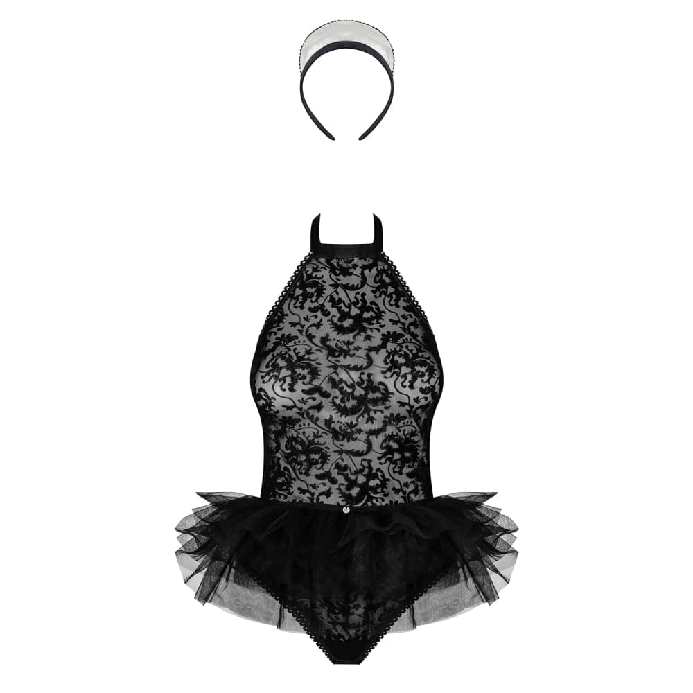 Be the maid of his dreams with this seemingly innocent roleplaying maid costume. It comes with a cheeky see-through lace and open back that will add a bit of mischief to the whole look. Along with your hot appearance, you will enjoy a perfect fit and perfectly emphasized shapes!