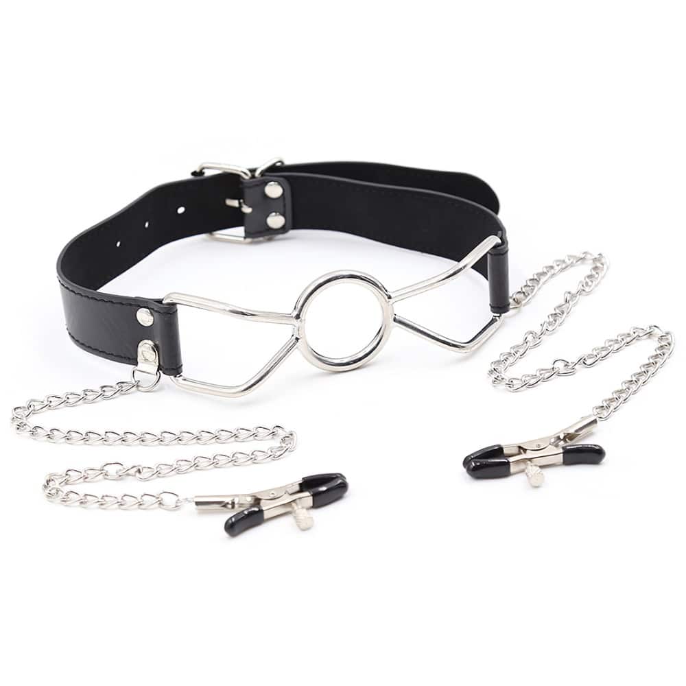 Φτάστε στα άκρα με αυτό το φετιχιστικό φίμωτρο, το οποίο συνδυάζεται με ερεθιστικούς σφιγκτήρες θηλών. Το φιμωτρο θα διεγείρει όλες τις αισθήσεις σας, μέσα από παιχνίδια υποταγής και κυριαρχίας με το ταίρι σας. Το μεταλλικό φίμωτρο διαθέτει οπή τρύπα αερισμού για πιο εύκολες ανάσες, ενώ το δερμάτινο λουρί είναι ρυθμιζόμενο και προσαρμόζεται σε όλα τα μεγέθη κεφαλιού.