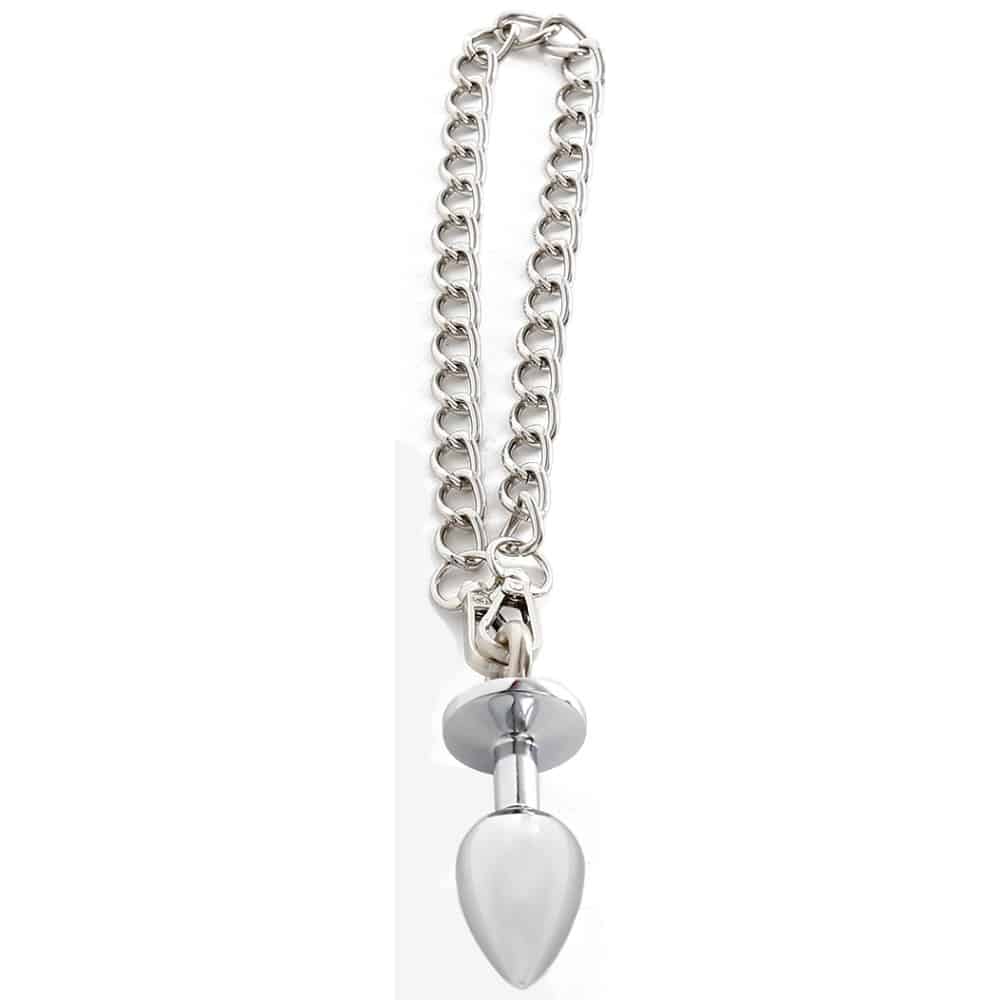 Μικρή σε μέγεθος μεταλλική πρωκτική σφήνα, έτοιμη να προσφέρει ηδονή τόσο σε αρχάριους όσο και σε προχωρημένους χρήστες sex toys. Η αλυσίδα στην οποία είναι κρεμασμένη μπορεί να χρησιμοποιηθεί σαν χειρολαβή αφαίρεσης ή για να φορεθεί γύρω από τον λαιμό – θα γίνει το νέο σας αγαπημένο κόσμημα!