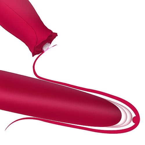 Διεγέρτης κλειτορίδας τριαντάφυλλο κόκκινου χρώματος με έντονη αναρρόφηση αέρα στην μια πλευρά και δονητής ράβδος με κίνηση μπρός πίσω από την άλλη.
