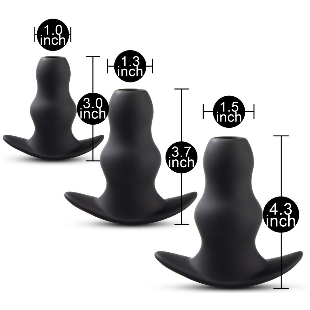 Πρωκτικές σφήνες με τρύπες μπρός-πίσω για την δημιουργία τουνελιού. Στόχος – 1) Διεύρυνσης της εισόδου και 2) Χύσε μέσα οτι θες. Πως? Επέλεξε και εφάρμωσε την σφήνα της αρεσκείας σας στον πωπο του/της συντρόγου και χύστε μέσα οσο λιπαντικό γουστάρετε! Νιώστε την απόλυτη πρωκτική διέγερση, διευρύνοντας την είσοδο του πρωκτού σας για ακόμη περισσότερη απόλαυση με αυτό το σετάκι 3 σιλικονάτων σφηνών κατασκευής Analxstasy. Οι σφήνες όχι μόνο διευρύνουν τον πρωκτό και προετοιμάζουν για οποιαδήποτε πρωκτική περιπέτεια έχετε σχεδιάσει αλλά δίνουν επίσης την δυνατότητα στο ταίρι σας να δεί μέσα στον πρωκτό, να αδειασει οσο λιπαντικό θέλει, να εφαρμόσει και άλλα πρωκτικά βοηθήματα ή να ερεθίσει περεταίρω! Η εργονομική βάση τους επιτρέπει την ασφαλής χρήση.