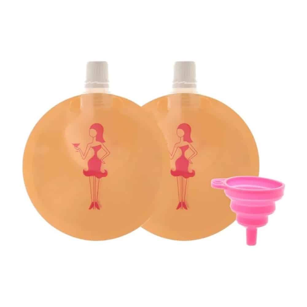 Κρύψτε το ποτό σας όπου θα κοιτάξουν όλοι, αλλά δεν θα τολμήσουν να αγγίξουν. Εκτός αν τους προσκαλέσετε. Η φιάλη χωρά 115ml και ταιριάζουν άνετα στο εσωτερικό του γυναικείου σουτιέν. Για βέλτιστη χρήση, τοποθετήστε τα με κατεύθυνση το ένα προς το άλλο, ώστε να φαίνεται ότι αποτελούν μέρος του κέντρου του σουτιέν. Ιδανικό για να κρύβετε το ποτό σας σε εκδηλώσεις!