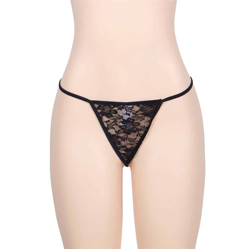 Delicate Crotchless Floral Lace String Black