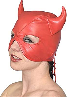 Unisex, Faux soft RED Leather Devil Role Play Half Face Mask with Horns. One size fits all. Devils RED Leather Half Face Role Play Hood is a Halloween Devil Demon Horn Hood Mask in red color – Leather Headgear Costume Accessory for Cosplay, Fancy Dress Up – Full Cover Western Evil Face Mask for Carnival Night Club. FOR MORE INFORMATION, please visit product’s main page down below…