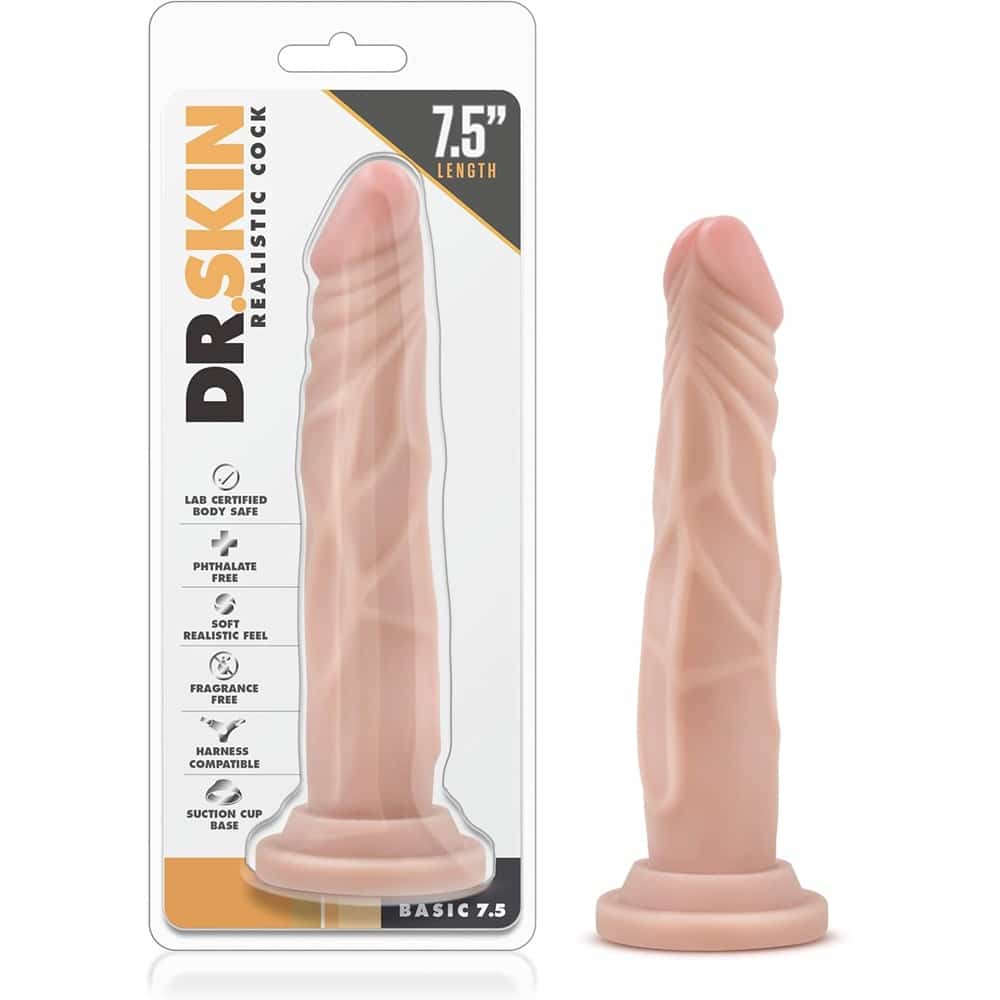 The Dr. Skin Realistic Cock 7.5 X 1.4 inch Beige (17 X Ø3.5 cm) is a realistic dildo with a sturdy suction cup base that holds to any flat surface for solo time. Or partner up for strap-on harness fun! Ideal for anal and vaginal penetration. This Dr. Skin Realistic Cock made of soft, phthalate free PVC. To clean use soap and water or a toy cleaner then let air dry. To clean use soap and water or a toy cleaner then let air dry. The doctor is in and waiting!
