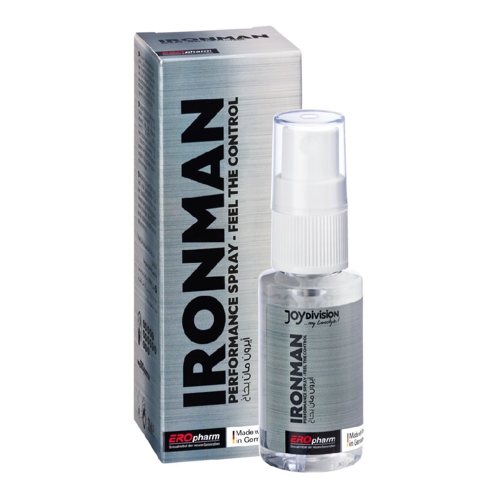 Το σπρέι IRONMAN υπόσχεται να παρατείνει τη διάρκεια της σεξουαλικής πράξης, ενισχύοντας την αντοχή και τη δύναμη κατά τη διάρκεια της. Ειδικά σχεδιασμένο για την περιποίηση του πέους, περιέχει τζίνσενγκ και μπαμπού, προσφέροντας αυξημένη ευλυγισία και βελτιωμένη εμπειρία οργασμού. Διατίθεται σε μπουκάλι ψεκασμού των 30 μλ.