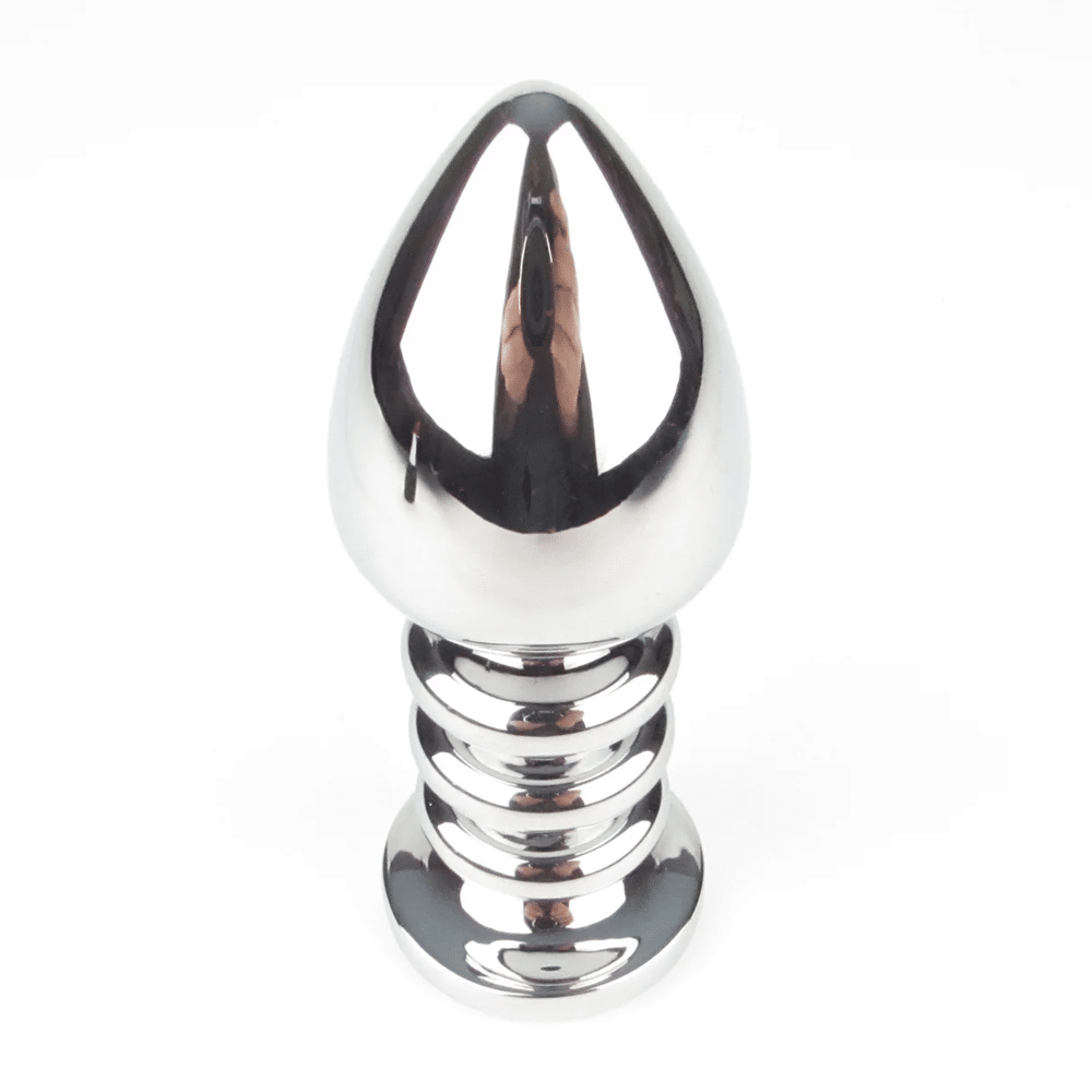 Naughty Toys Ribbed Shaft Metal Butt Plug with purple jewel is a fabulous screw shaft type. Take anal sensation next level with this smooth ribbed shaft plug. This silver tear-drop will evoke your hunger for the exquisitely firm and full sensation of a metal plug while the weight will take your breath away whether you enjoy play alone or with a partner. Surrender to the liberating ecstasy of slow insertion, the smooth surface and slightly tapered tip followed by textured corkscrew ribbing delivers next level play. The wide, jeweled base will ensure both safety and spectacle so you can enjoy your kinky shenanigans carefree.. The largest (Ø 4 cm) metallic jeweled plug. Defenetely, designed for fetish roleplay bedroom games. Read and learn more at the product's main page below or visit one of our physical stores in Limassol and ask for product presentation..