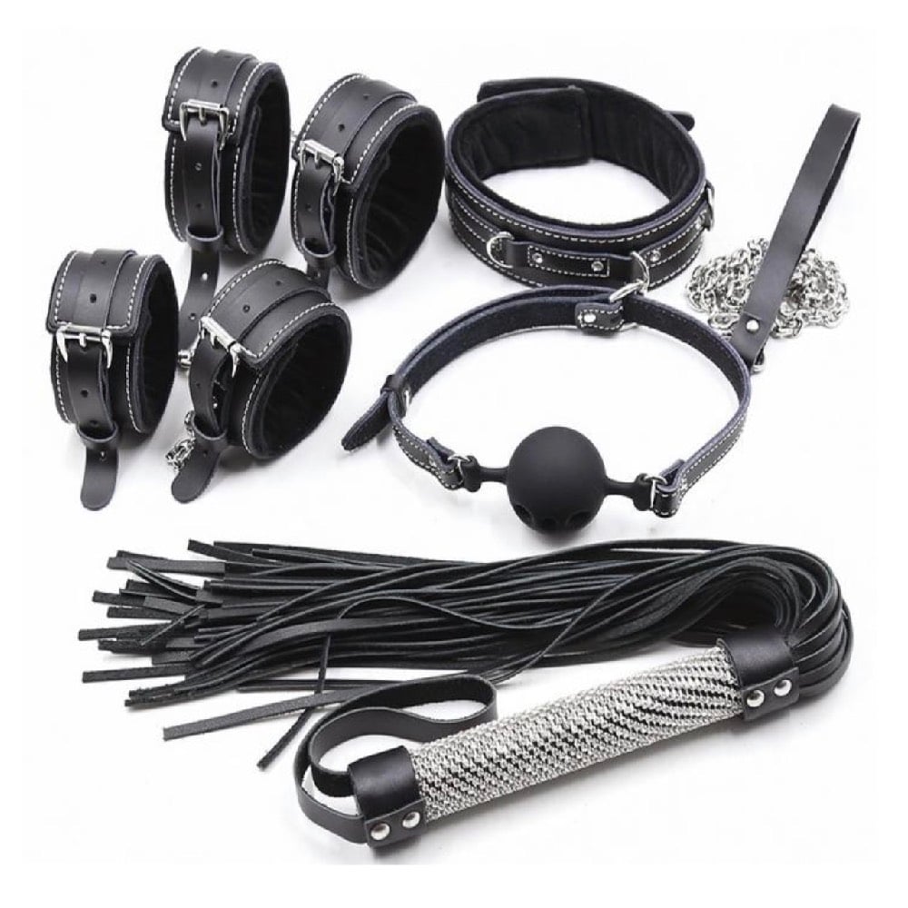 Bdsm bondage Naughty Toys Sensual Restraint and punishment set, made with genuine leather. Designed with velvety, foam padded wrist and ankle cuffs, neck Collar chocker together with Metal chain Leash and whip with rhinestoned handle whip and ball gag. This is a true punishment and restraint fetish set for next level bondage couples. More information at the main page of the product or visit one of our physical stores in Limassol and ask for product presentation…
