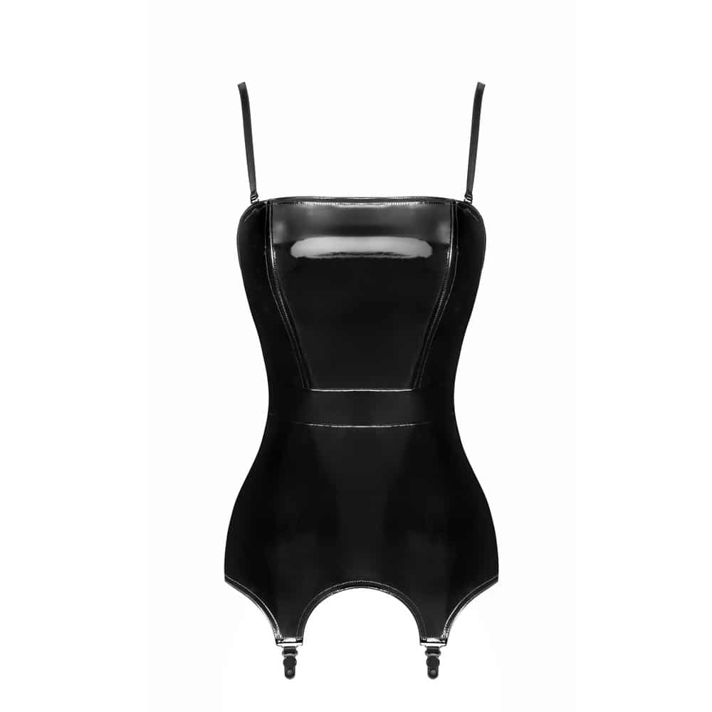 Turn up the heat with this seductive black PVC corset and garter belt combo. Designed for the bold and confident woman, this piece combines statement-making style with figure-enhancing structure. Crafted from flexible, contouring PVC, the top features boning to cinch the waist and sculpt a stunning silhouette. A back zipper ensures easy wear, while the integrated garter belt includes four adjustable straps, seamlessly blending allure with practical functionality. This striking piece defines and shapes your curves for an unapologetically sensual look. Wear it with matching lingerie or as a bold, standalone statement—either way, this PVC combo guarantees a tailored, comfortable fit that moves with you while holding its supportive, body-enhancing shape. FOR MORE PRODUCT INFORMATION, please, visit the main product's page down below or visit one of our physical stores in Limassol and ask our staff for product presentation…