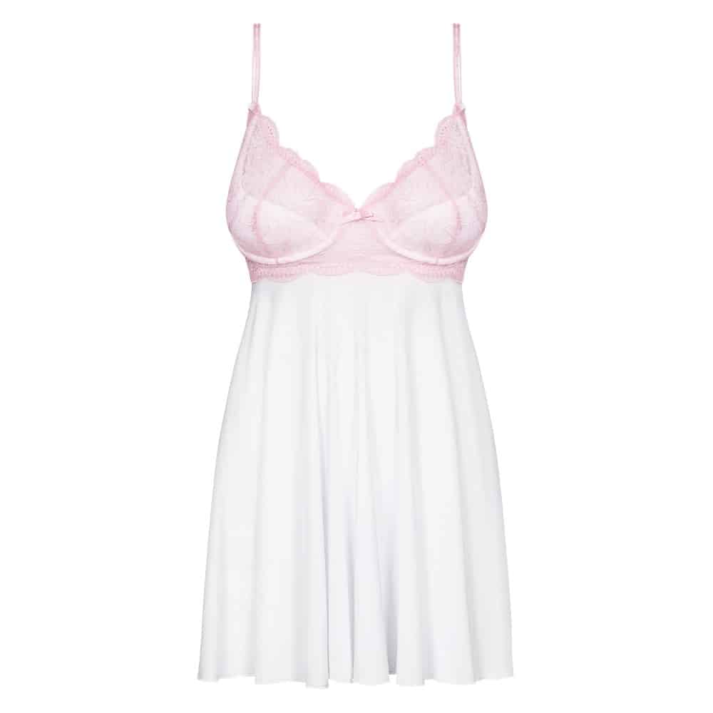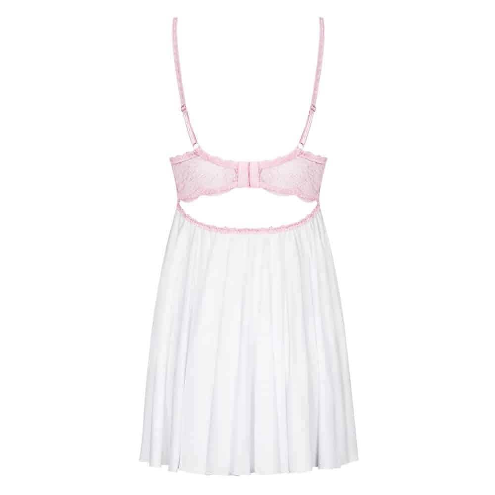 Χαριτωμένο, αισθησιακό, εκπληκτικό.. μερικές από τις λέξεις που μπορούν να χρησιμοποιηθούν για αυτό το φορεματάκι.. σε κομψό άσπρο με απαλό ροζ με ασορτί στρινγκάκι για να σαγηνεύσετε το ταίρι σας.