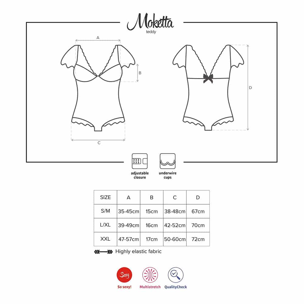 – top and bottom of the teddy adorned with coquettish lace – sexy look!