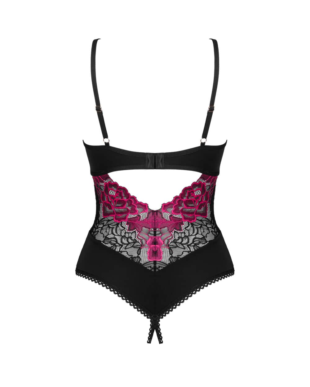 Get ready for a romantic evening by candlelight and ignite the flame of passion in the heart of your loved one. The Rosenty black teddy with a seductively open crotch will help you, and simultaneously introduce you to the secrets of irresistible pleasure. Let the soft material wrap your body in comfort and enhance your figure, and subtle details will make it impossible for anyone to stop looking at you.
