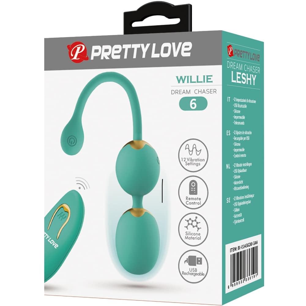 Pretty Love Willie silicone balls with remote control dream chaser 6 in light green color BI-014548W-A4. With this remote control vibrating couples sex toy featuring 12 vibration patterns, strengthening your pelvic floor has never felt so good. For a vaginal stimulation, this toy is perfect for you. Slip these balls into your vagina and feel the incredible stimulation while increasing your vagina’s elasticity.