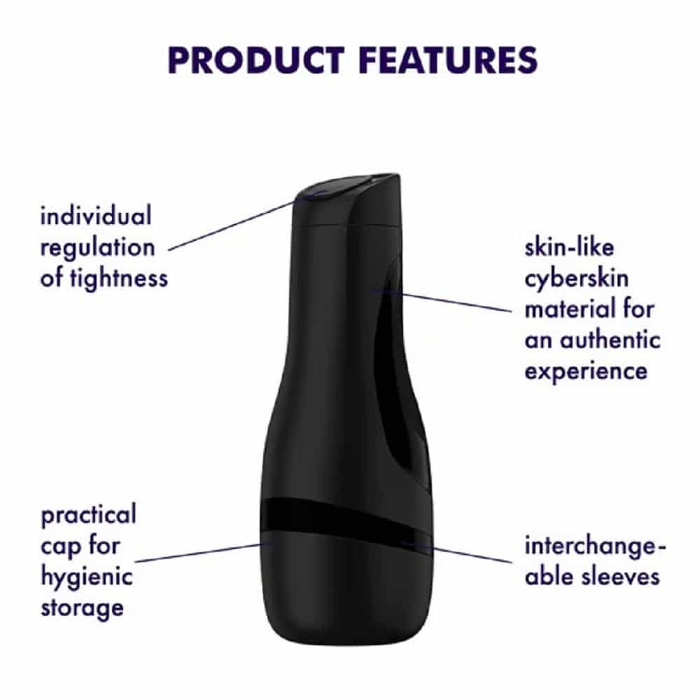 The Satisfyer Men Classic is an elegant and discreet masturbator designed for stimulating the entire penis. It features a realistic, skin-like sleeve made of cyberskin material, enclosed in a black ABS plastic case. The device includes a pressure regulator for customizable intensity, and the sleeves are interchangeable for a variety of textures. For best results, use a water-based lubricant. FOR MORE PRODUCT INFORMATION, please, visit the main product's page down below or visit one of our physical stores in Limassol and ask our staff for product presentation..