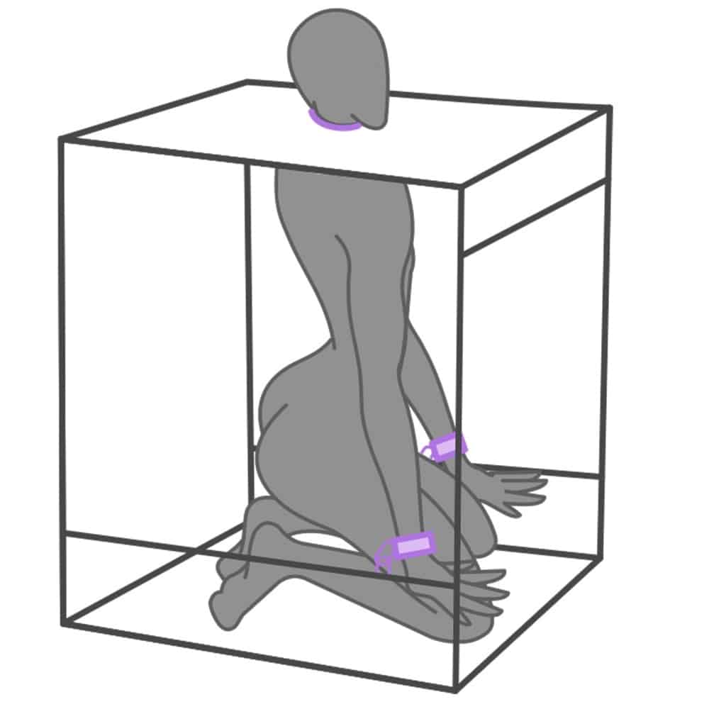 The play box for connoisseurs! The closed BDSM box, Bukkake from Secret Dome, is perfect for imaginative games that are out of the ordinary. The sturdy box with its tube plug-in system and robust cover can be quickly assembled and will be ready to use in no time at all. With a large hole at either side. The hole for the head has a zip and a wide, adjustable collar. It also provides convenient access via the zip door. The LED lighting and a soft floor mat ensure great comfort. The included handcuffs can be positioned inside as required. The soft padded restraints can be put on and adjusted quickly with the buckle fasteners.