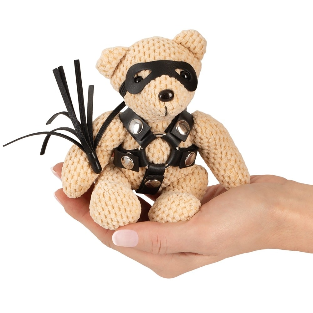 Small SM teddy in a crocheted look. Meet your new paradoxical companion: this small, crocheted teddy is incredibly soft and sweet, but comes dressed in a classic SM look. The accessories—harness, eye mask, and mini flogger—are crafted from realistic black imitation leather. Complete with a keyring chain on its head, it's the perfect pocket-sized piece of tame rebellion. FOR MORE PRODUCT INFORMATION, please, visit the main product's page down below or visit one of our physical stores in Limassol and ask our staff for product presentation…