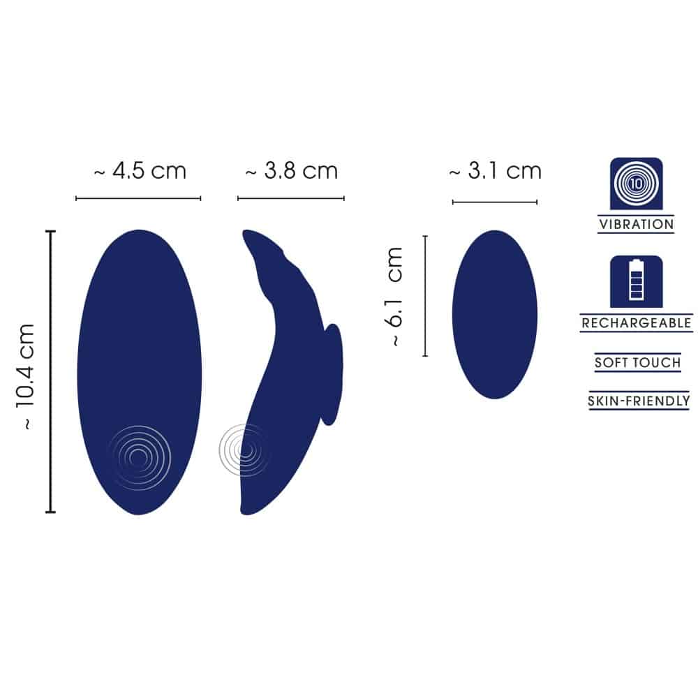 Πολύ λεπτός και εύκαμπτος, ασύρματα τηλεχειριζόμενος δονητής εσωρούχων Sweet Smile Extra Slim. Πανάλαφρος, με τέλεια εφαρμογή στο επίμαχο σημείο της γυναίκας. 100% διακριτικός, αθόρυβος δονητής, ο οποίος κουμπώνει στο εσώρουχο με μαγνητάκι, παραμένοντας σταθερά στο ίδιο σημείο και χωρίς να φεύγει απο τη θέση του. Κατασκευασμένος με απαλή, άνετη σιλικόνη, έχει σχεδιαστεί για να ευχαριστεί την κλειτορίδα και το αιδοίο με έντονες δονήσεις. Μπορείτε εύκολα να ελέγξετε τις 10 λειτουργίες δόνησης με ένα μικρό τηλεχειριστήριο που έχει εμβέλεια 8 μέτρων, ιδανικό για παιχνίδι με παρτενέρ. Οι δονήσεις μπορούν επίσης να ελεγχθούν απευθείας από το ίδιο το παιχνίδι, με τα ανάγλυφα κουμπάκια. Ο λεπτός, εργονομικός και ευέλικτος σχεδιασμός του με ανυψωμένα μέρη εξασφαλίζει μέγιστη ευχαρίστηση και άνεση. Μπορεί επίσης να χρησιμοποιηθεί ως δονητής χειρός. ΓΙΑ ΠΕΡΙΣΣΟΤΕΡΕΣ ΠΛΗΡΟΦΟΡΙΕΣ ΠΡΟΪΟΝΤΟΣ, επισκεφθείτε την κύρια σελίδα του προϊόντος παρακάτω ή επισκεφθείτε ένα από τα φυσικά μας καταστήματα στη Λεμεσό και ζητήστε από το προσωπικό μας πλήρη παρουσίαση του προϊόντος.