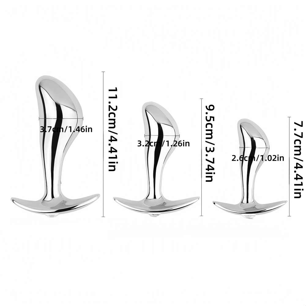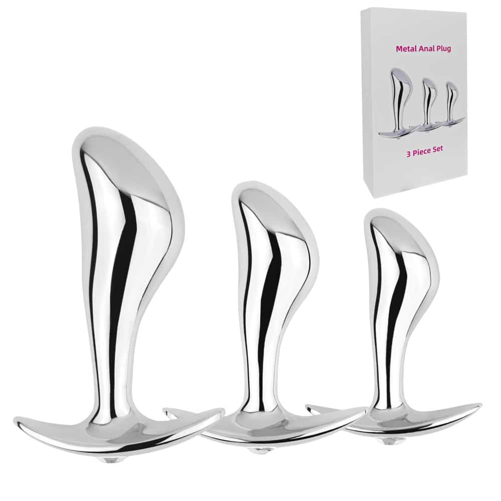 Metal Butt Plug Anal Sex Toy Curved with T shape stopper Handle. Stainless Steel 3-Size Set Trainer. Ergonomic design – The special finger-shaped head design Precisely hit your P-spot and massage your prostate to get a incredible orgasm. The curved base design makes the anal plugs portable to use it anywhere anytime.