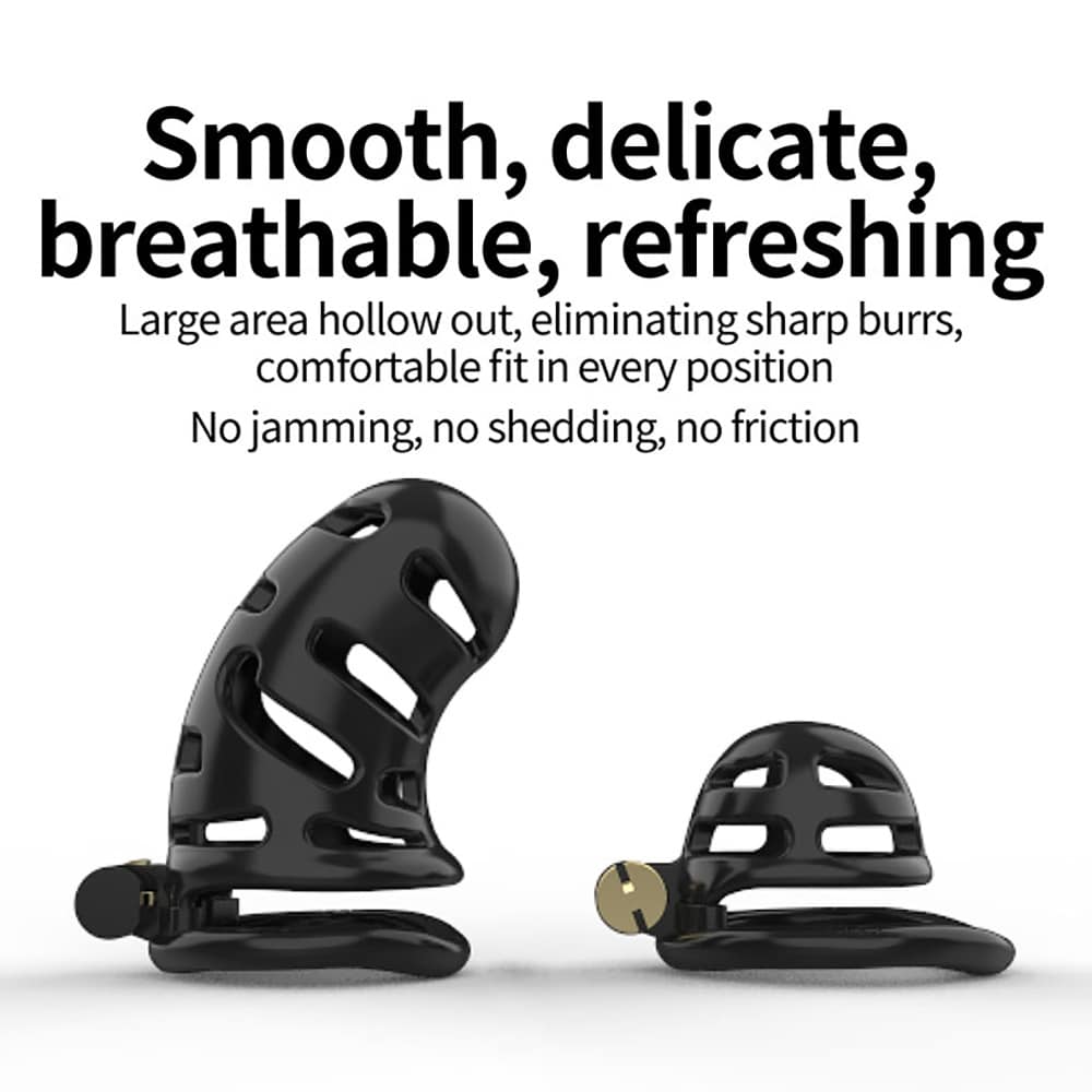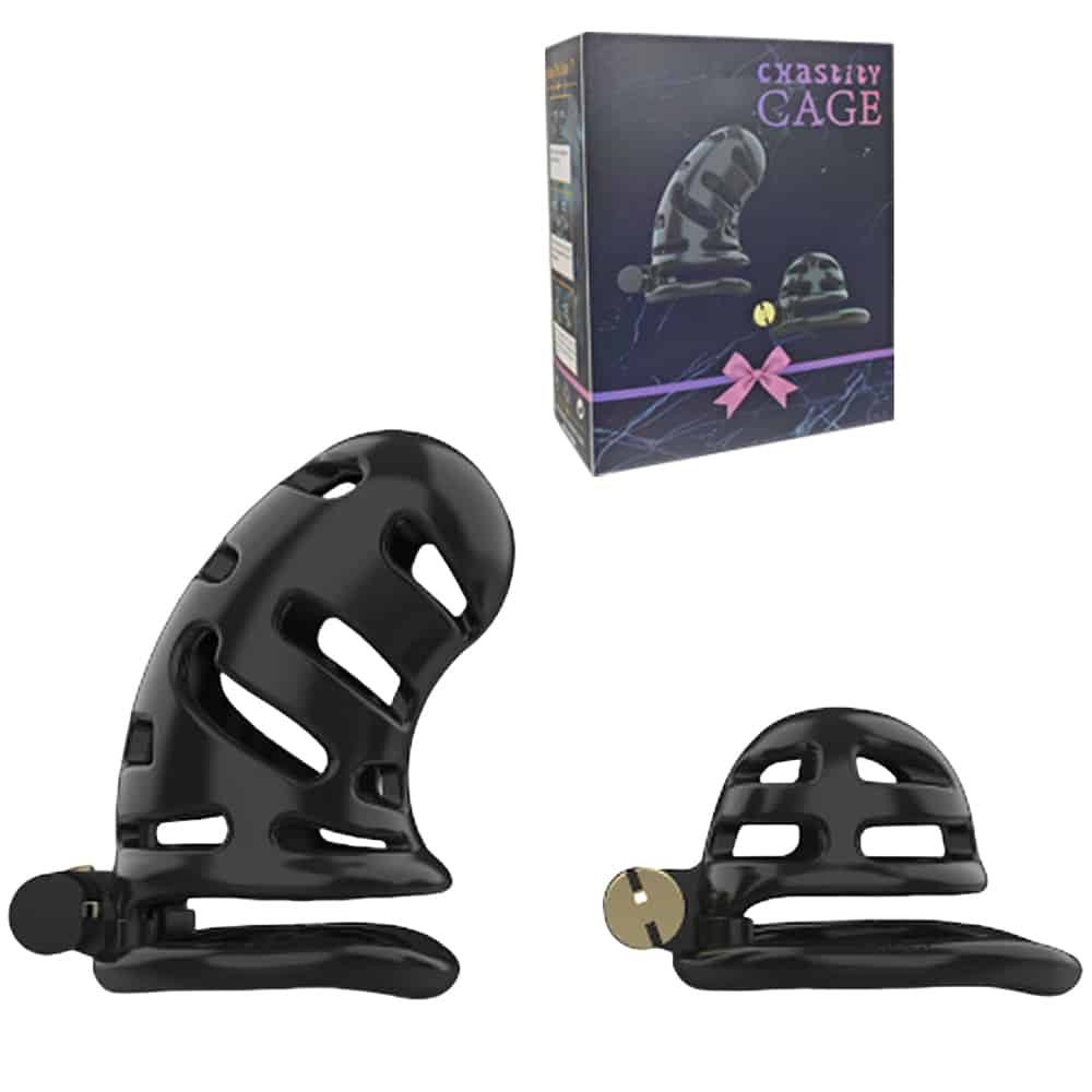 Say goodbye to size anxiety once and for all — TOYBOY Black Male Chastity Penis Cage Set 2-in-1 set gives you full control over your chastity, specially designed for versatile play styles. Easily find the most fitting and comfortable combination among the many included accessories. Black ABS Male Chastity Cage Set – Includes 2 different size cock Cages, 5 Rings and Locks. Lightweight and smooth chastity cock cage. Very strong and durable, no burrs, ergonomic design, easy to wear and store. High quality ABS material. Multi-size options to ensure correct fitness. Very comfortable, Hollowed Out and breathable design chastity cage. Concealed Appearance, Urine Hole Design.