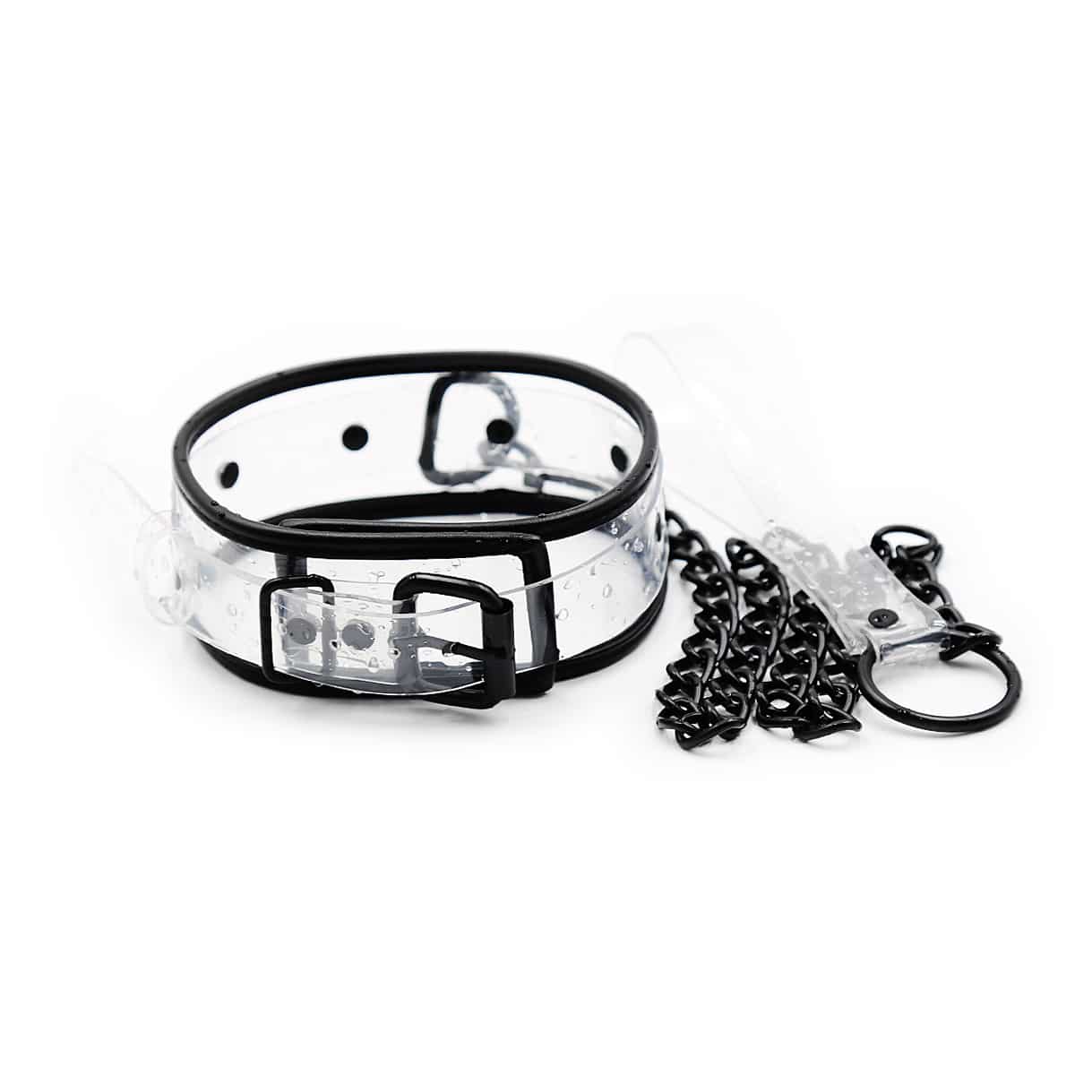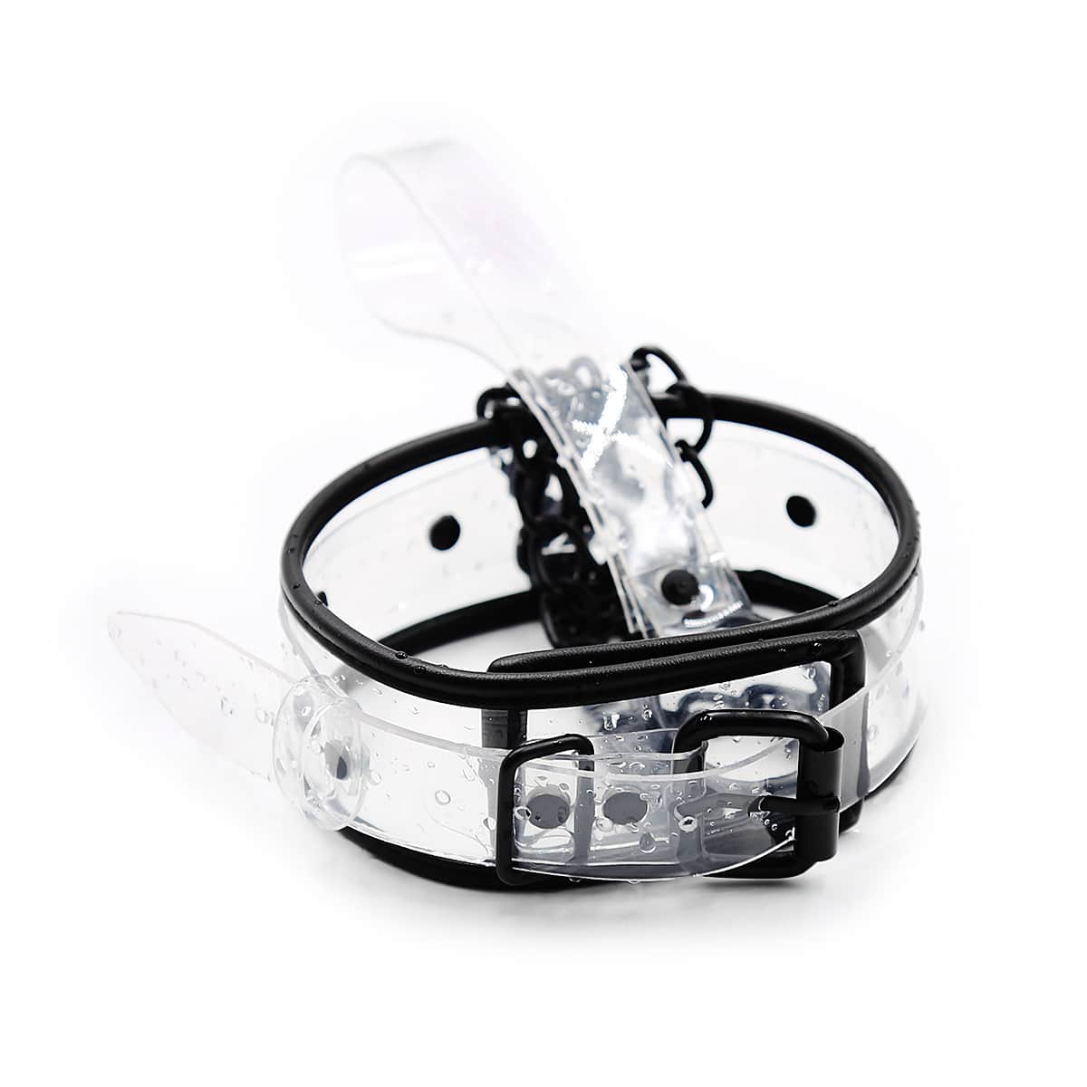 One size adjustable Transparent bdsm fetish playful collar and leash. Fully adjustable nickle-free hardware. Non-staining body-safe vinyl. Unisex design and compatiable with all Naughty Toys Bondage accessories