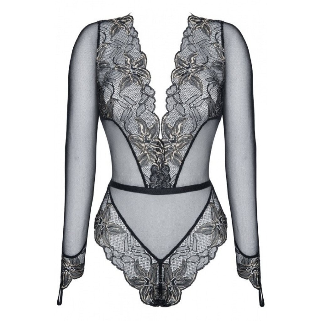 Dramatic and provocative teddy lingerie with long sleeves from Demoniq -Magnetic exclusive lingerie collection