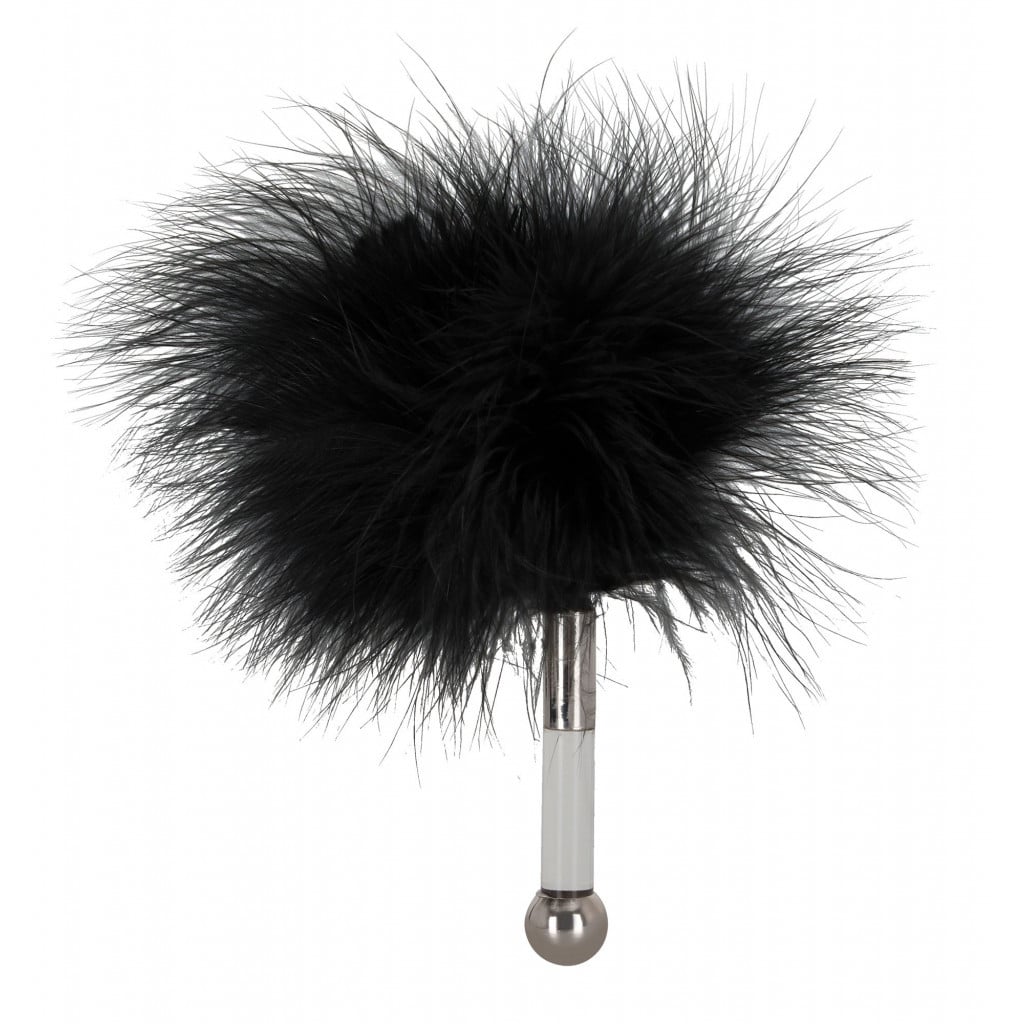 Black feather pom pom teaser on a short acrylic glass handle (transparent/silver-coloured) by Bad Kitty Germany.