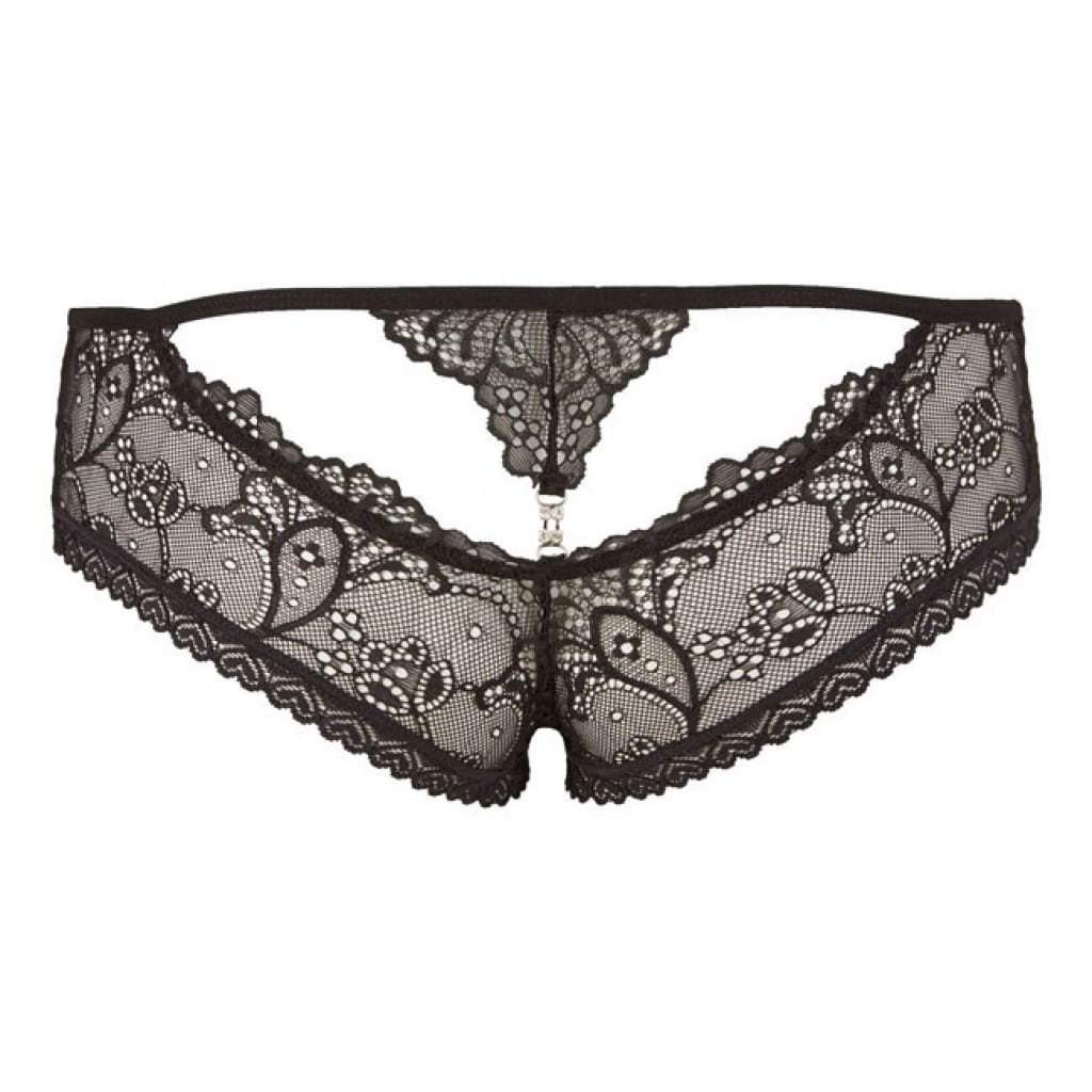 Cottelli black lace panties with decorative cut out and a small glittery gem at the back.