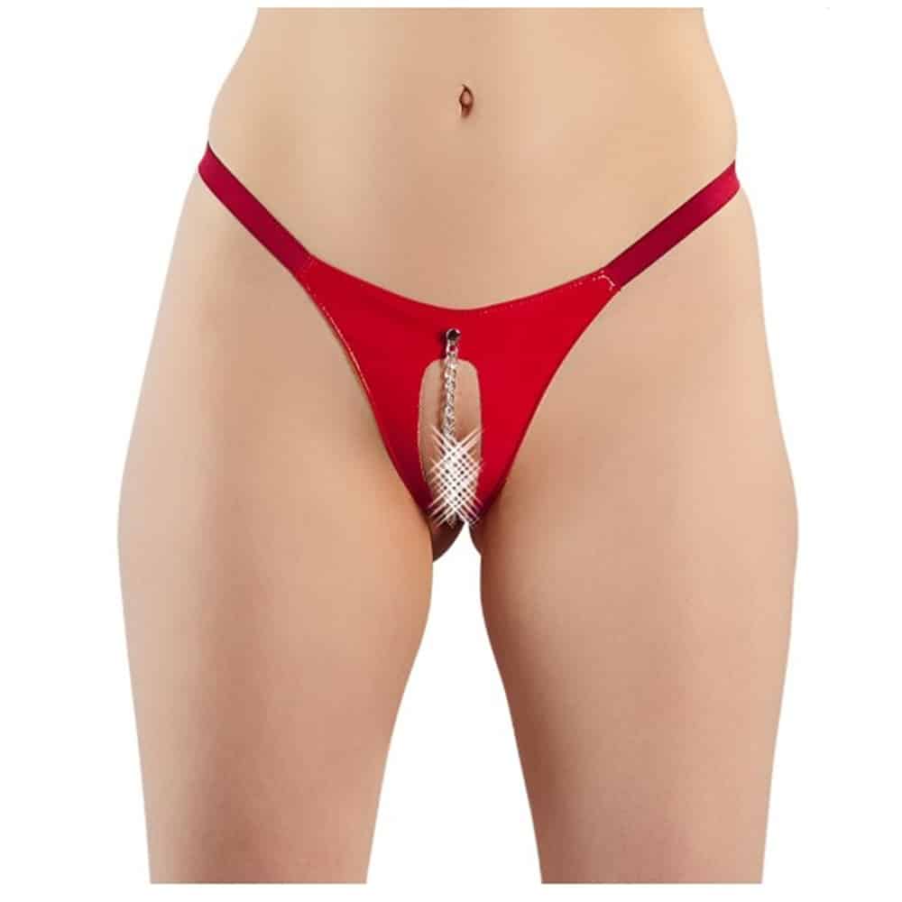Crotchless Red Vinyl String with Chain