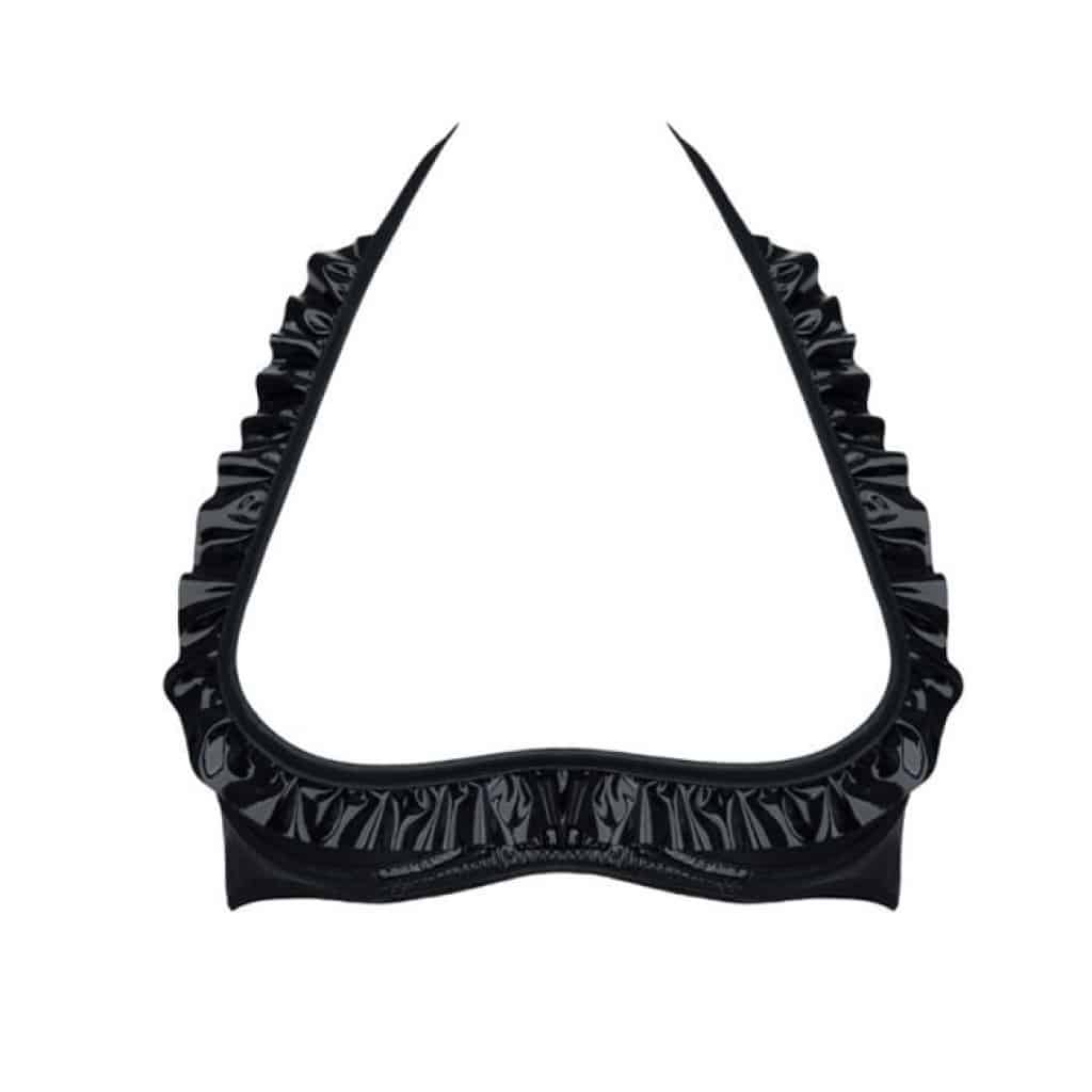 Provocative shiny open bra set from Demoniq Lingerie.