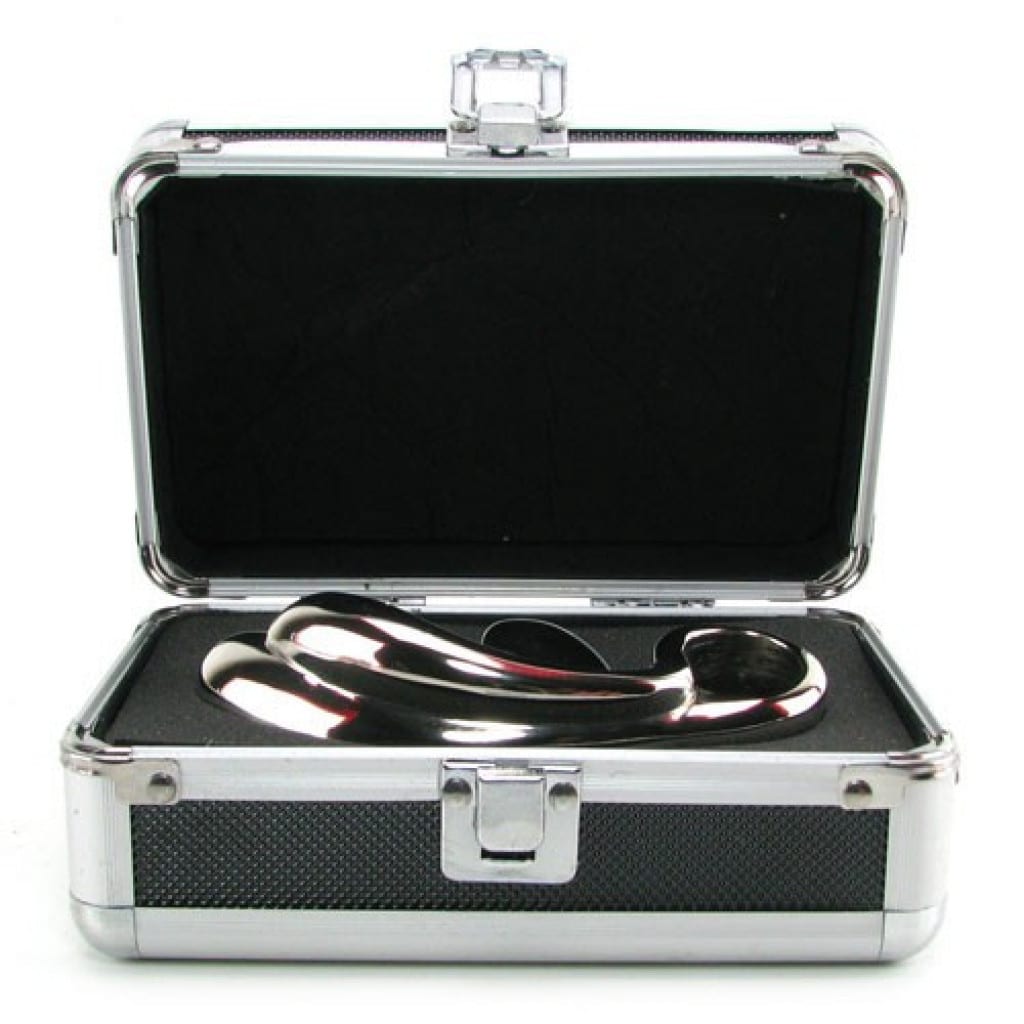 An excitingly unique, thrillingly unyielding unisex pleasure tool from Pipedream s ultra sexy Metal Worx collection, the Double Trouble features a shape that can t possibly miss. Designed for firm, precision massage of either the g-spot or prostate, the Trouble features two upcurled fingers , side by each, with a third protruding upright from just below the handle. When inserted either vaginally or anally, the fingers easily naturally reach male and female g-spots, and can be manipulated or rocked using the sturdy handle for further, customizable stimulation. That third finger, meanwhile, provides pleasurable pressure against the clitoris or perineum externally, a feature that both men and women will adore, especially considering the weighty, silky smoothness that steel provides. Regardless of how you choose to enjoy your Trouble, the feel of the slick, ultra firm steel is unparalleled. Steel is deliciously weighty (this toy is doubly so) and amazingly unyielding, allowing for the type of firm, unrelenting massage that s often key to g-spot and prostate based orgasms. It s also incomparably hygienic, thanks to a nonporous surface that cleans easily and can be completely sterilized, if need be. Soap and water or a good toy cleaner works well, you ll also be able to run your Metal Worx through the dishwasher, wipe down with a bleach solution, or place in boiling water. There s very little maintenance required with a steel toy, care should be taken not to scratch it with abrasive surfaces or cleaners, but that s about all you ll need to worry about. In terms of lubricants, anything goes with steel, you ll be able to use your favorite oil, water or silicone based formulas with the Double Trouble, as well as any other slick substance you re partial to. This dildo comes in a sturdy foam-lined storage case, which helps protect your toy and keep it clean until the next use.