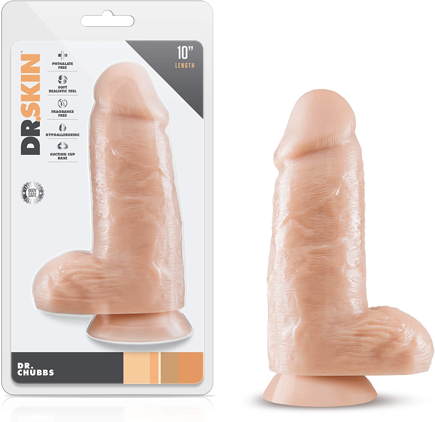 The doctor is in! The Dr Skin Dr. Chubbs Dildo with Suction Cup 25 cm Vanilla offers you new levels of girth. With 3.25 inches (8,2 cm) of width and 6.75 inches (17,1 cm) of insertable length, Dr. Chubbs is ideal for anyone who wants to feel stretched to their limits. It delivers a soft, realistic feel and likelife texture for a better-than-real experience. Stick this toy on any smooth, flat surface to take advantage of its strong suction cup. Dr. Chubbs' lab-tested non-porous PVC is body safe and easy to clean: just wash with gentle soap and water, then let air-dry.