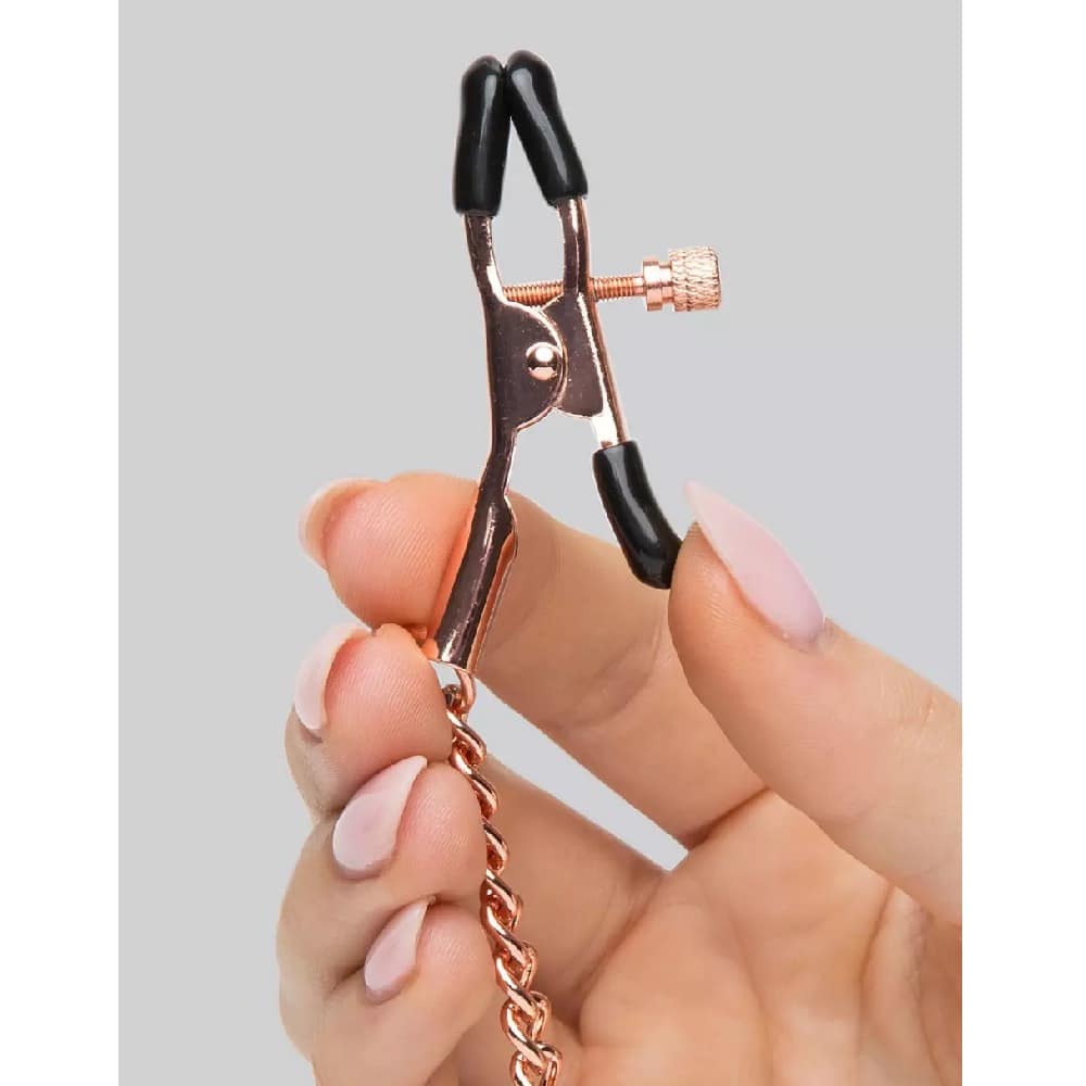 Naughty Toys Bdsm golden jewel necklace chain with adjustable four (4) clamps. Two for the nipples and the other two for the labia. As you can see on the product photo, the necklaca is adjustable to custom fit your body and neck.