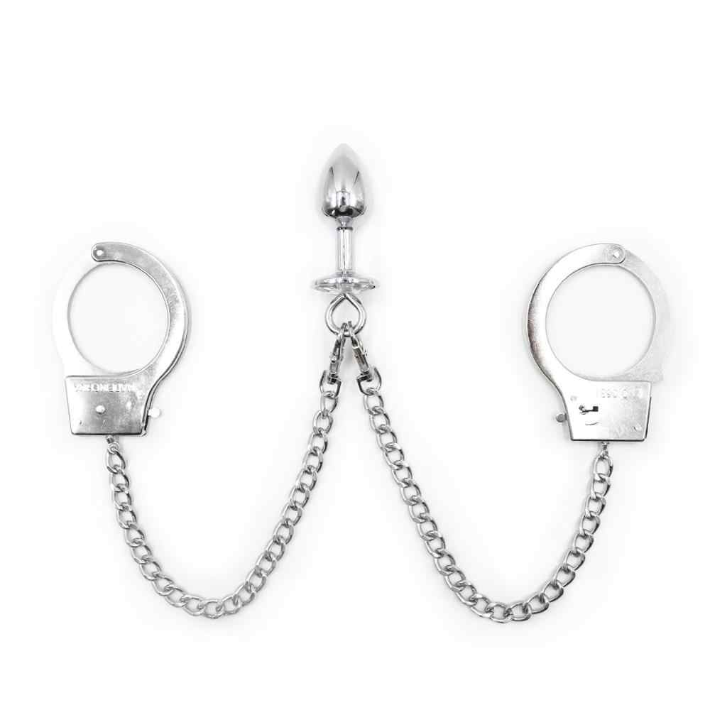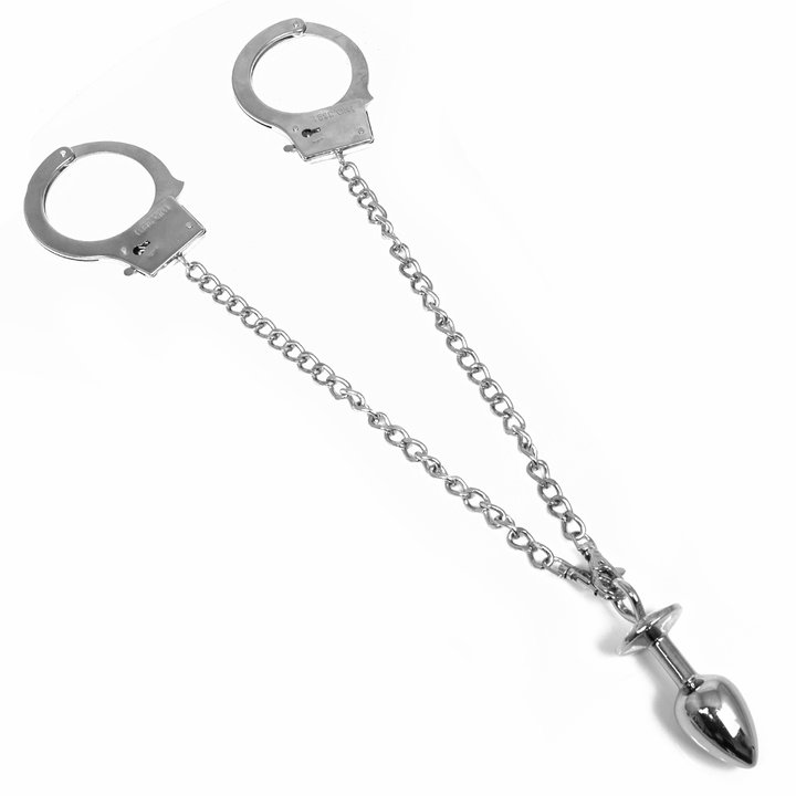 Detachable Small metal jeweled Anal butt Plug with metal Arrest restraints Chain handcuffs. Let’s take fetish play to the next level and experience double the pleasure with a sensational metal anal plug joined onto a chained handcuffs. Get detained and experience a stretch inside with the Naughty Toys Anal Arrest Metal Handcuffs with Butt Plug. Combine your anal fantasies with your bondage fetishes to enjoy incredible role play options. The metal handcuffs will restrain your sub while the stylish, sparkling butt plug prepares you for exciting anal play. The butt plug can be detached from the metal handcuffs and both can be used separately. There will be no escaping anal pleasure during kinky BDSM games.