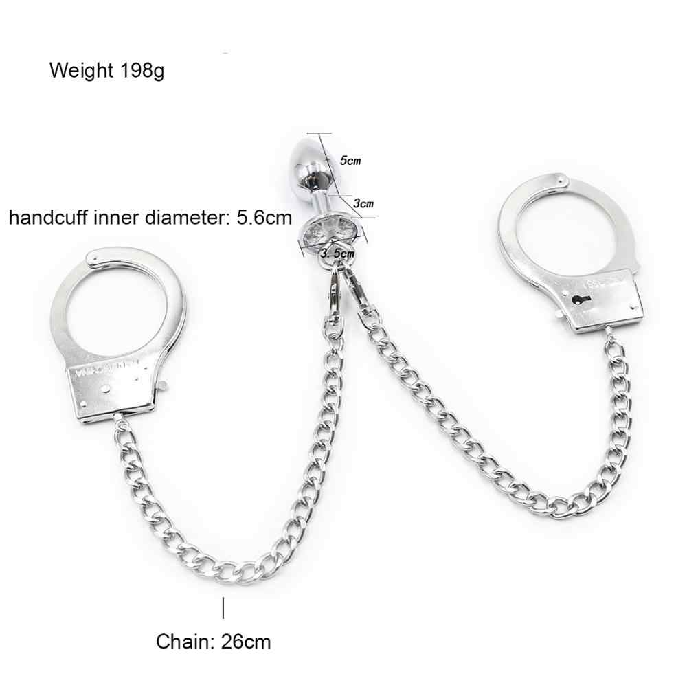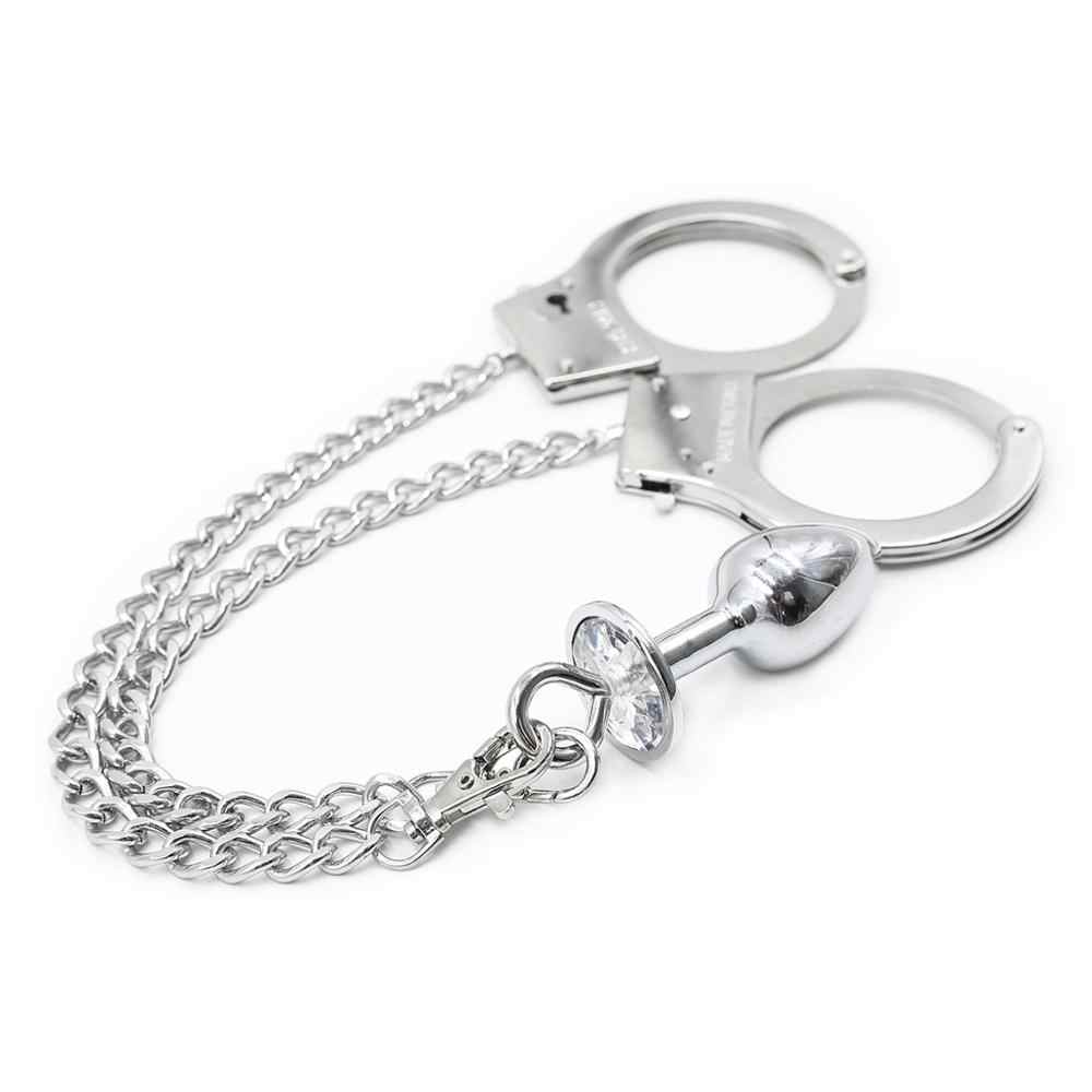 Handcuffs chained with detachable jewelled butt plug