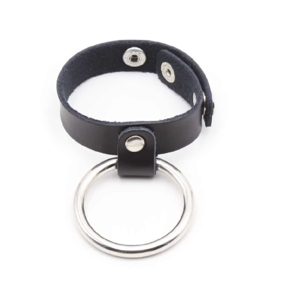 Leather strap ring for testicles-penis. Adjustable so that you can control how tight you want it to be and help you achieve a more efficient erection. It also has an attached metal penis ring, to keep the penis firm and stable and boost your confidence.