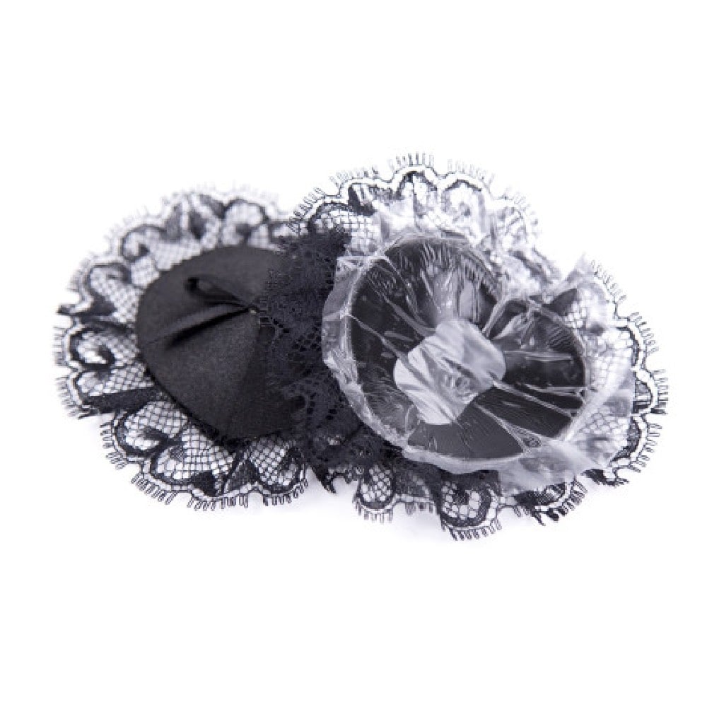 Give an extra flirty touch to your evening outfit or to your bedroom moments. Black, heart shaped nipple cover with lace. This nipple cover will draw your lover attention to your breasts.