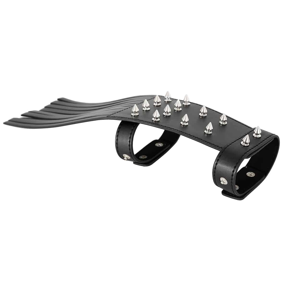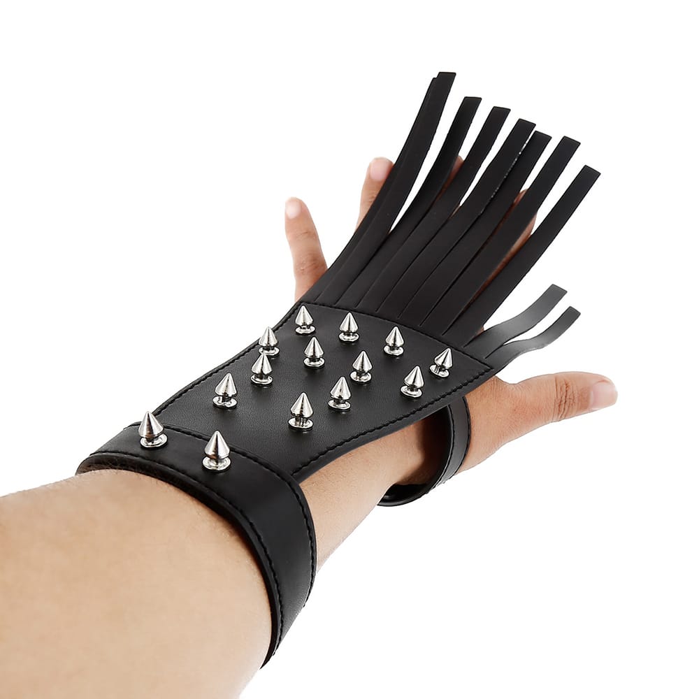 Leather spiked armband for wild bdsm game lovers. One size, fully adjustable leather armband covered with four raws of metal spikes.