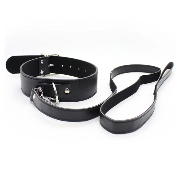 Control your submisive with the magnificent Naughty Toys faux leather collar with leash O/S. Bondage role play, one size fully adjustable, faux leather black neck collar with leash by Naughty Toys.