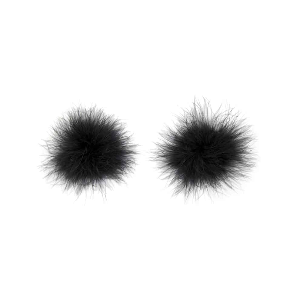 The Naughty Toys Feather Round Nipple Pasties Black is a self-adhesive and reusable round nipple pasties with soft feather. Easy to take on or off . Ideal for burlesque, glamour models, pole dancers or for spice in the bedroom moments.