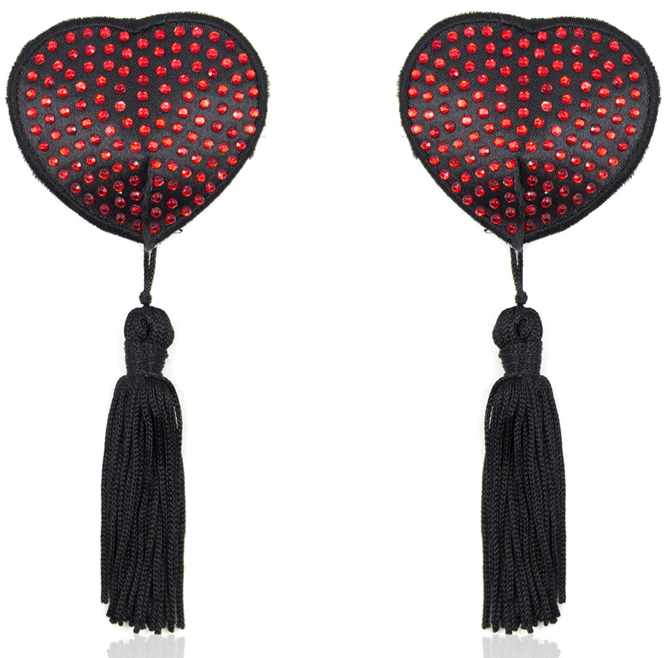 Embrace your nipples with Naughty Toys heart burlesque rhinestone decorateed nipple covers with tassels. Sexy Roleplaying accessories that will boost any fantasy.