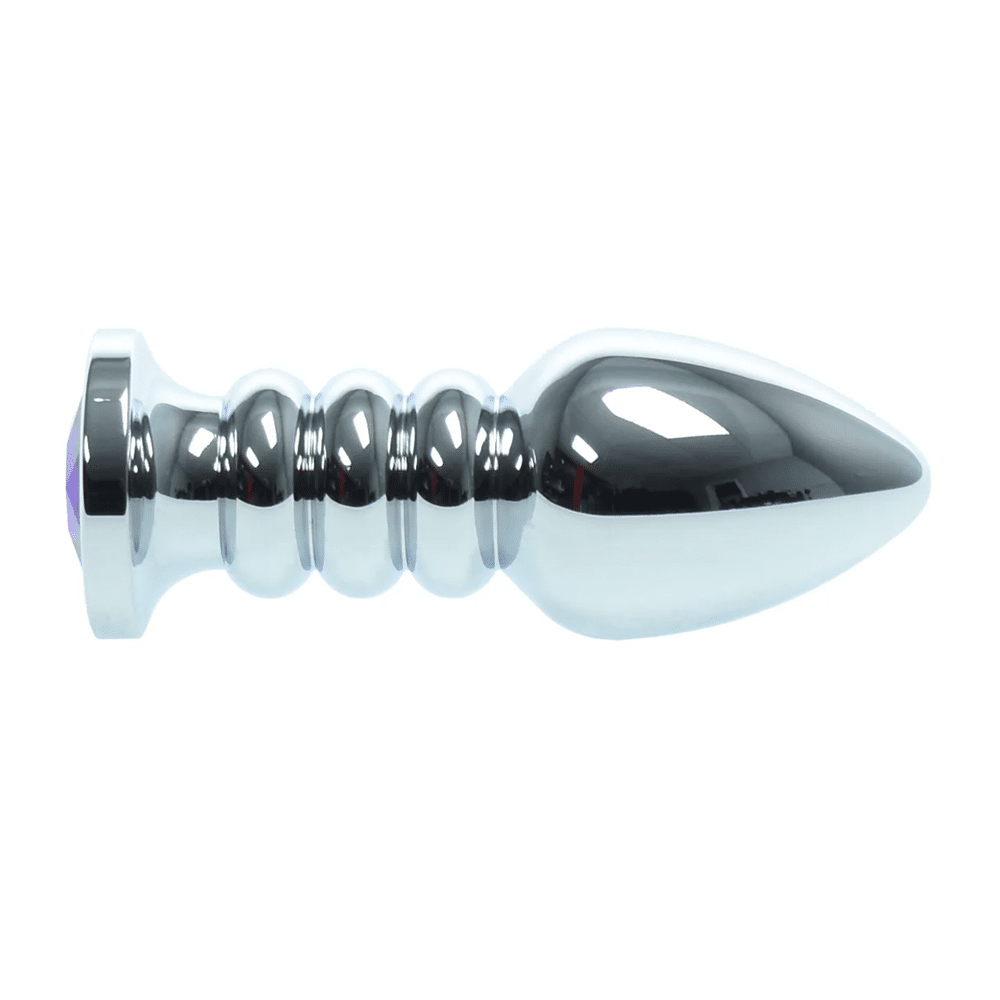 Naughty Toys Ribbed Steel Purple Jeweled Plug LARGE