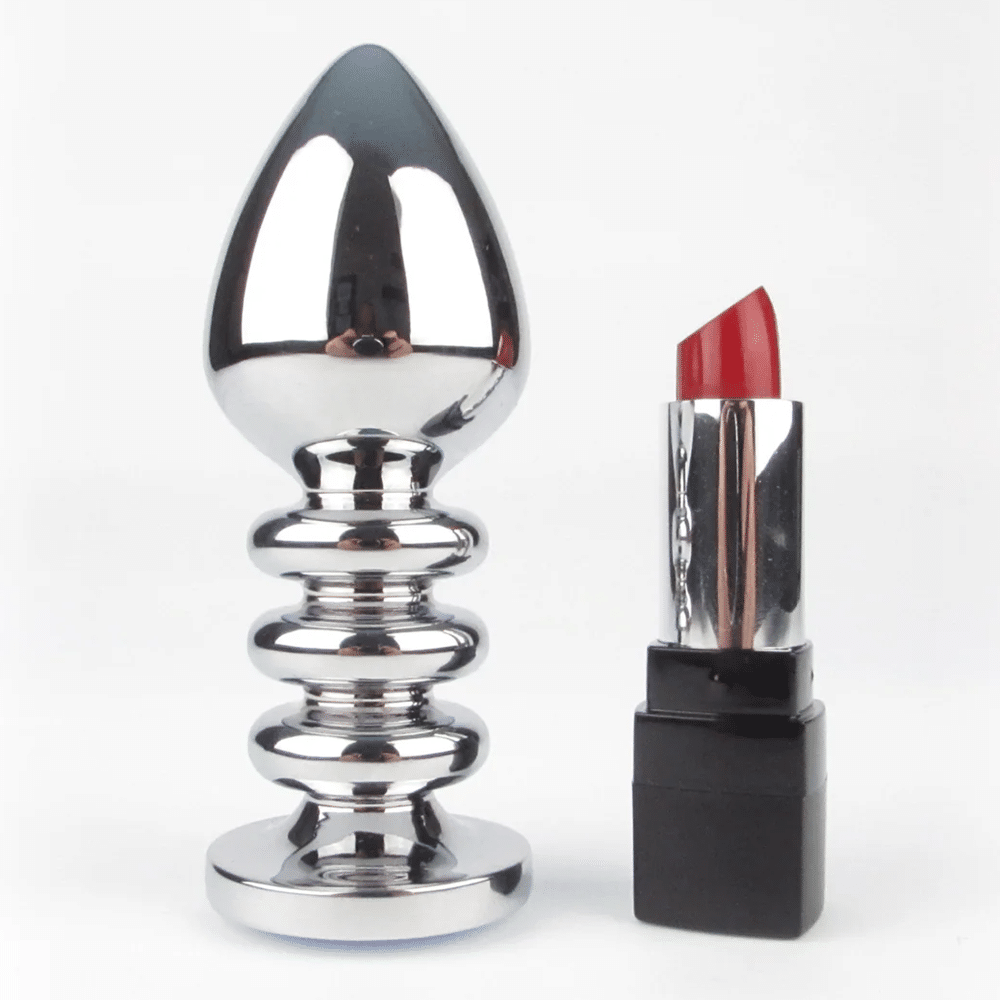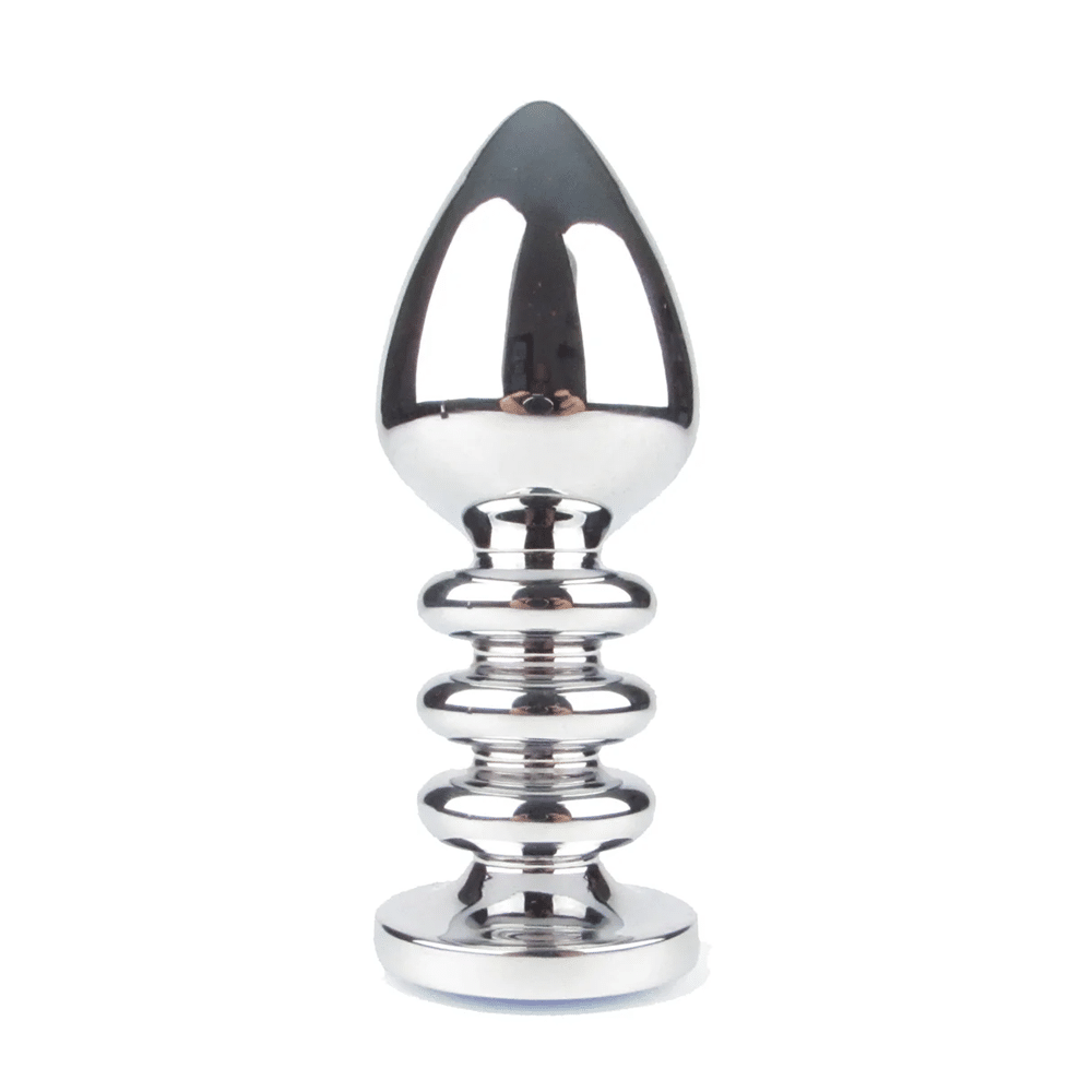 Naughty Toys Ribbed Shaft Metal Butt Plug with purple jewel is a fabulous screw shaft type. Take anal sensation next level with this smooth ribbed shaft plug. This silver tear-drop will evoke your hunger for the exquisitely firm and full sensation of a metal plug while the weight will take your breath away whether you enjoy play alone or with a partner. Surrender to the liberating ecstasy of slow insertion, the smooth surface and slightly tapered tip followed by textured corkscrew ribbing delivers next level play. The wide, jeweled base will ensure both safety and spectacle so you can enjoy your kinky shenanigans carefree.. The largest (Ø 4 cm) metallic jeweled plug. Defenetely, designed for fetish roleplay bedroom games. Read and learn more at the product's main page below or visit one of our physical stores in Limassol and ask for product presentation..