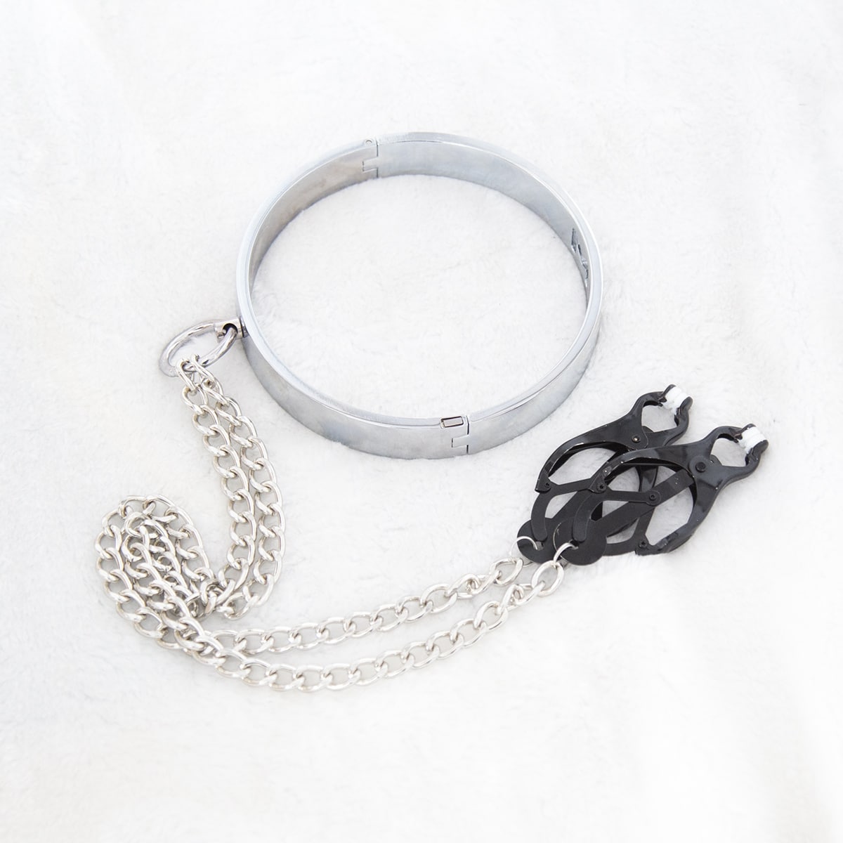 Naughty Toys Steel Collar with Nipple Clamps for Her