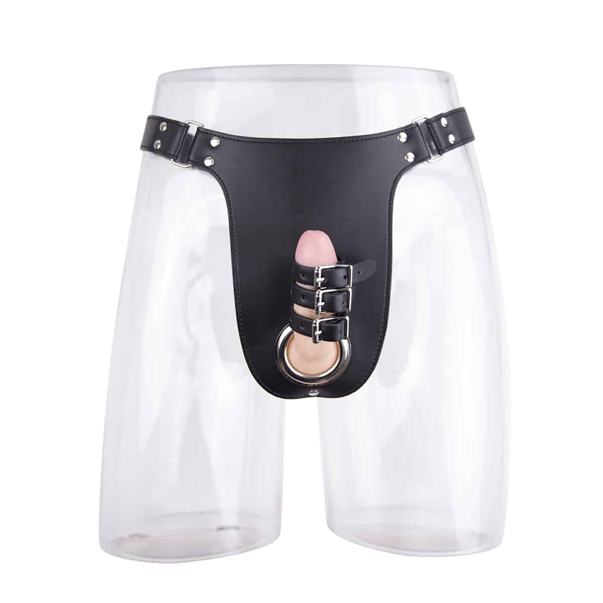 Enhance your sexual experiences with this fetishist-inspired belt which can add to your desires by ''trapping'' your partner's genitals with the attached restraints. The restraints keep the penis in the same position, allowing for unlimited teasing.