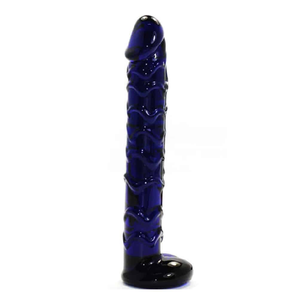 Dark blue cock and balls glassy dildo – amazing gift idea. It s waterproof and safe to use with any type of sex lubricant. Can be warmed in Warm water or chilled in Cold water. A stunning glass dildo with a lifelike head and ribbed for a realistic feel. The beauty of a glass toy is that you can change the temperature for your play time – simply place it in a cup of water of your chosen temperature, allow it to reach the desired temperature then lube up and play.