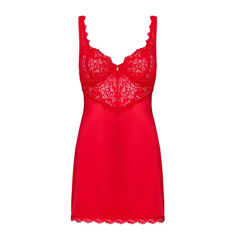 This hot, feminine and extremely tempting chemise from the Amor Cherris collection by Obsessive will make you fall head over heels at first sight! The delicacy of lace and classic elegance will wrap your body with pleasure, and the juicy red will increase the evening’s temperature. Do you dare to try it?