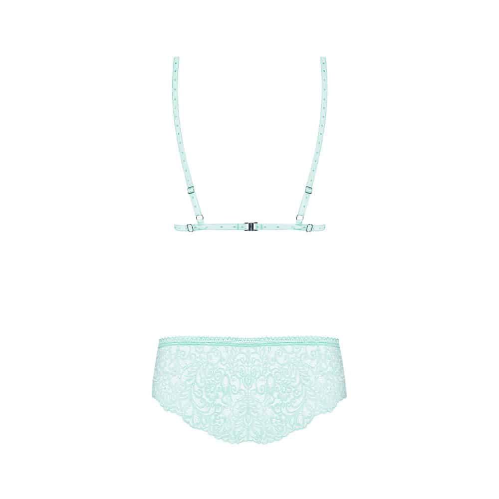 Charming floral lace lingerie set from Obsessive lingerie line. You will love this beautiful fresh color on your skin. Soft, triangle cups bra with flirty bow decoration and adjustable shoulder straps. To make your look perfect the set includes a matching thong as well. Wear it at your bedroom or all day long.. You will feel just amazing and He will love to see you in this sexy lingerie.