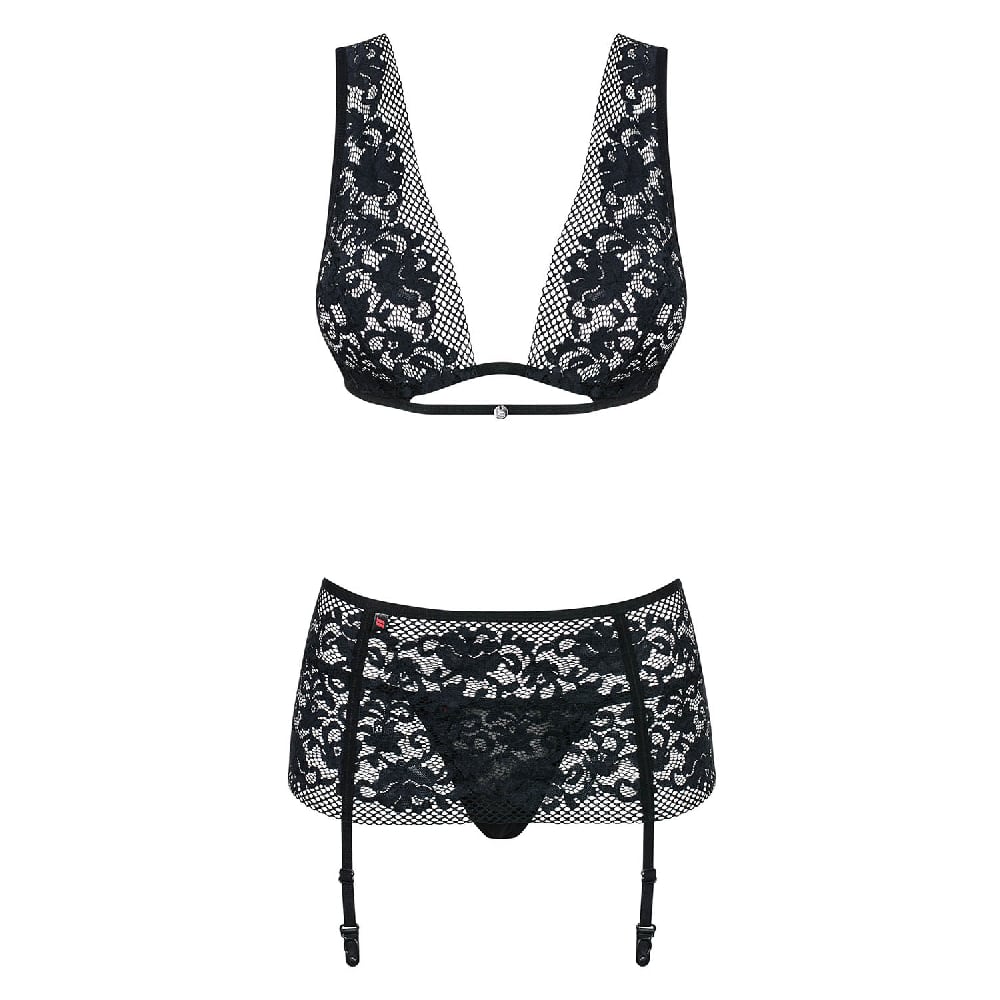 Warm up the atmosphere in your bedroom with this beautiful lace lingerie set from Obsessive Lingerie Line. Your partner will love your new look. Extremely feminine translucent floral lace bra with matching garter belt and thong. It s time to start the evening full of fun…