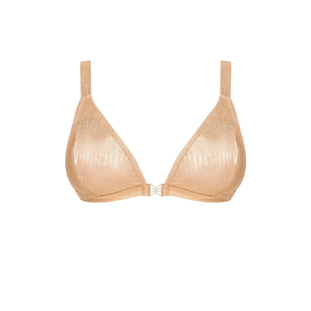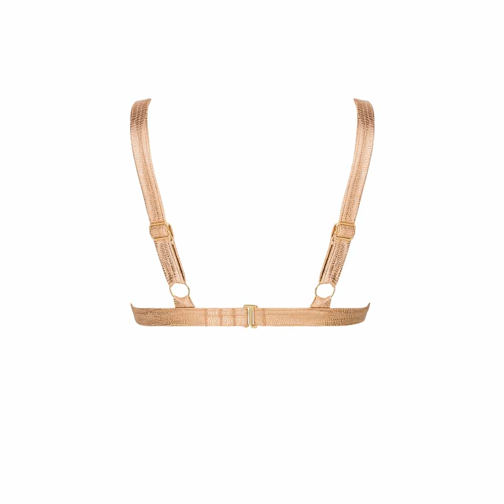 Multifunctional swimsuit top is the perfect choice for the summer! This bra will work well not only on the beach. It will be a fantastic addition to many holiday stylizations. Wide, comfortable straps and golden subtle decorations are a combination of comfort and elegance. The bra in combination with matching Filipines thong will be an excellent choice for a holiday beach design.